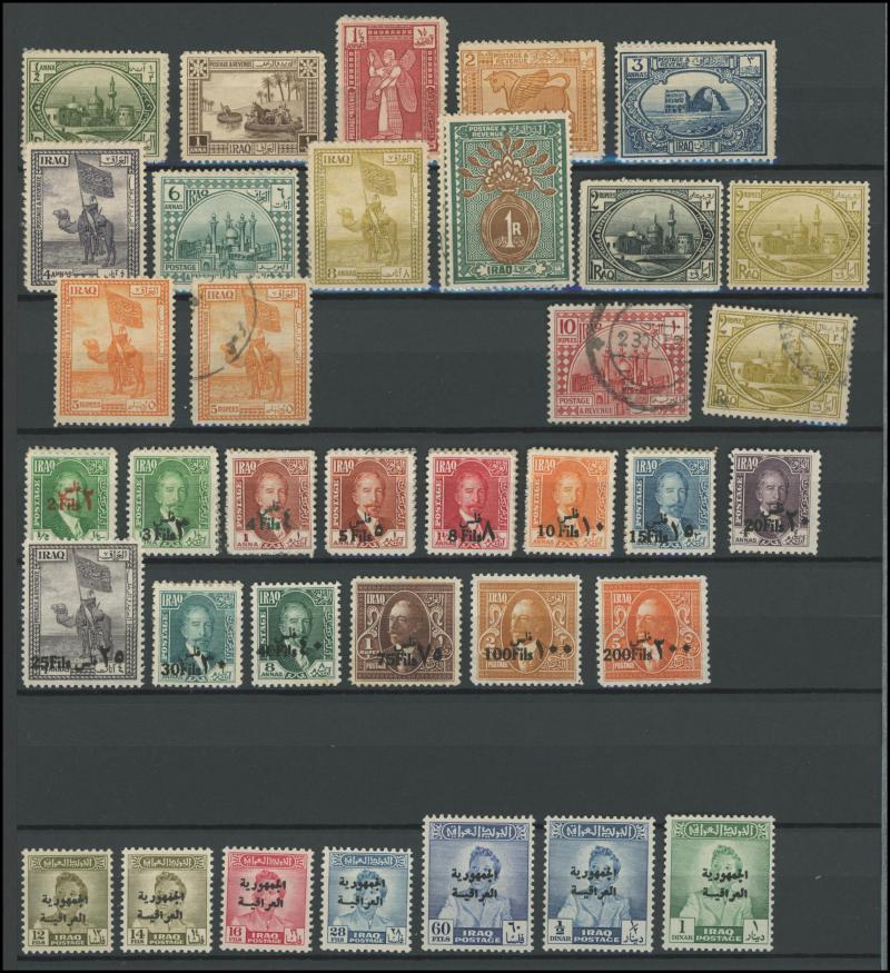 including '3 Annas' on 5pa green & orange, 1923-25 Pictorials, 1932 New Currency to 200f on 5r and '2 Fils' on ½a Wider Spacing in pair with normal, many lightly to very lightly mounted, plus a few used, Cat £1150+.