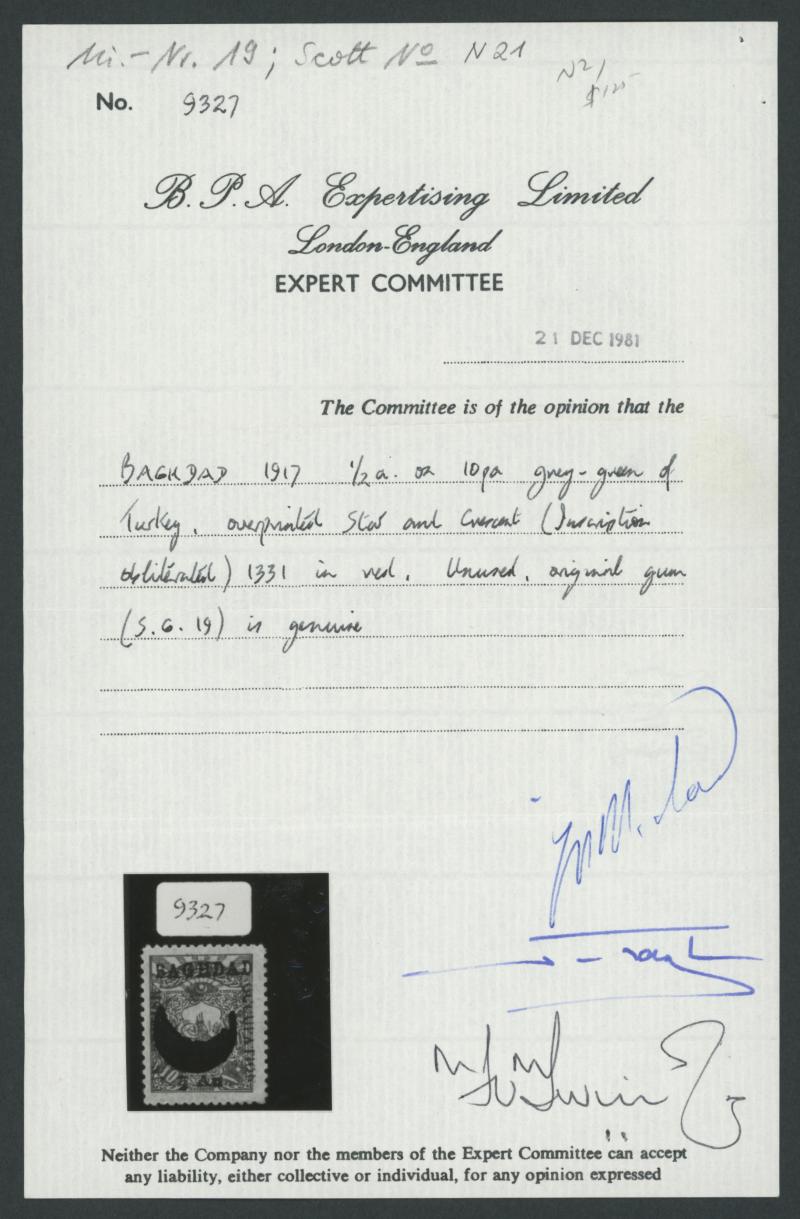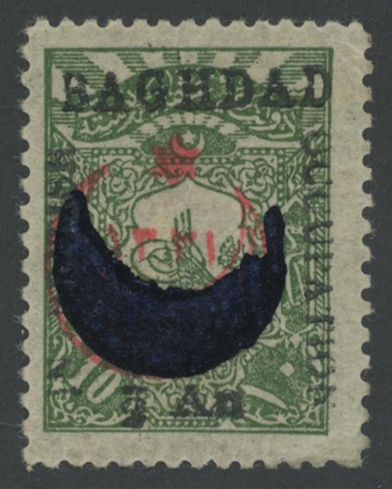 1917 Baghdad under British Occupation Six-Pointed Star & Crescent in Red additionally with Crescent in Violet-Black on '½ An' on