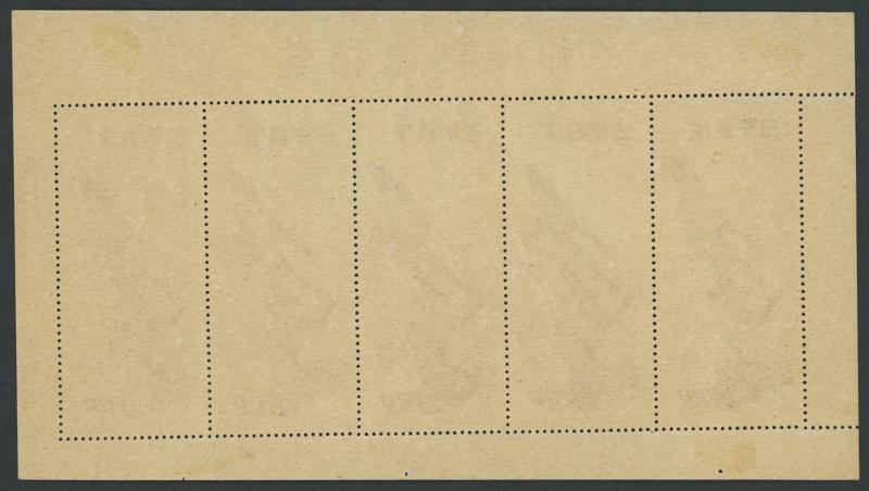 1948 Philatelic Week 5y 'Beauty Looking Back' Painting SG 514 complete sheetlet of 5 with inscription at top & imprint at base,