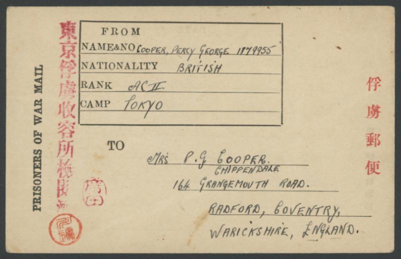 1945 (Sep 2; the date of the formal Japanese Surrender at Tokyo Bay) Tokyo (Omori) Prisoner of War Camp, Honshu British 'blue