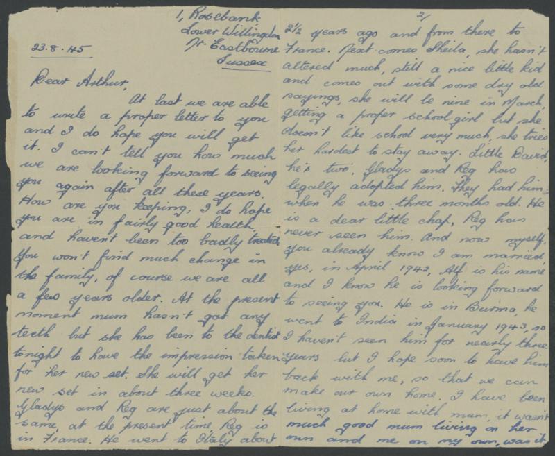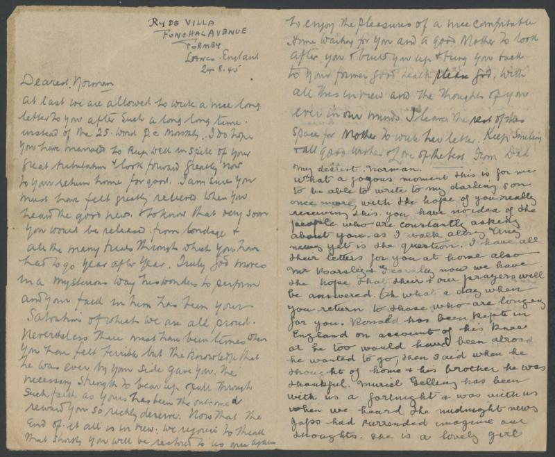 at Eastbourne after Japan surrendered so no British censor but no return markings so apparently received by the POW just before he was repatriated.