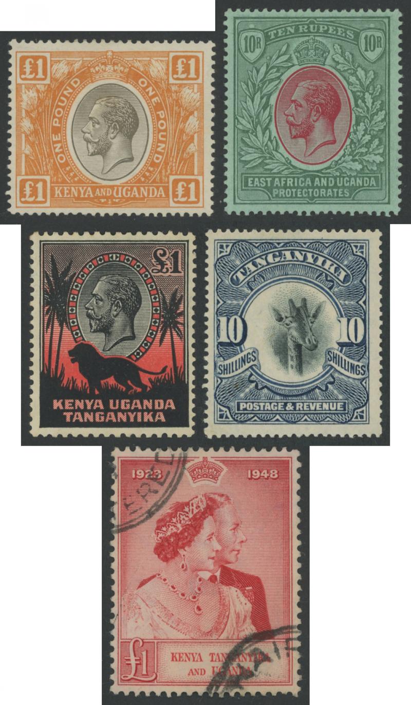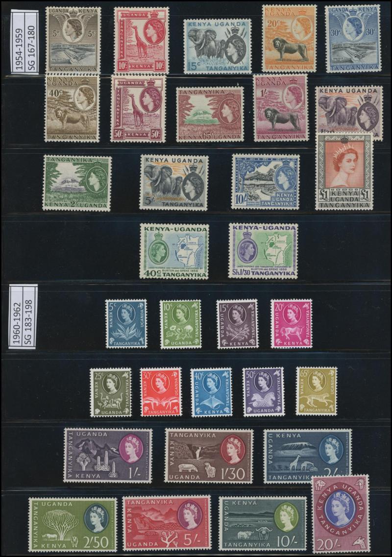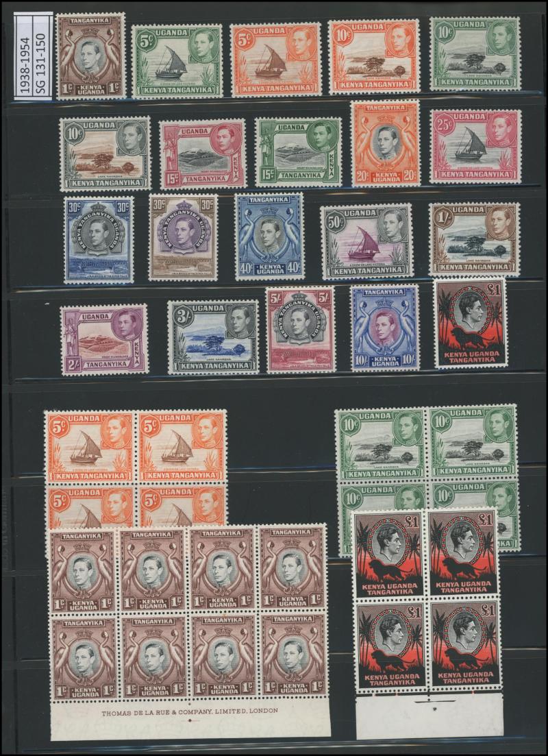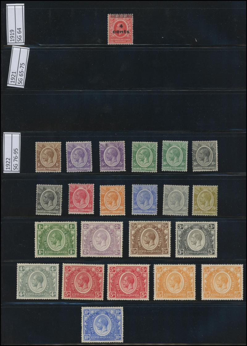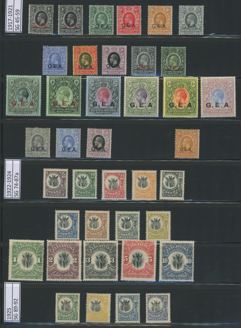 'GEA' Overprints on KGV Keyplates set to 5r *, 1922-24 Giraffes set to 10/- * plus extra 10/- and New Colours quartet *, and 1927-31 KGV Keyplates set to 10/- *, also 1961-64 Pictorials set **, then KUT 1935-37 KGV Pictorials set * (the £1 with a