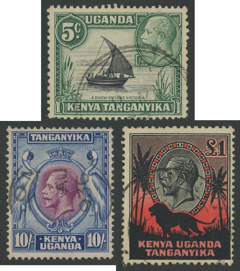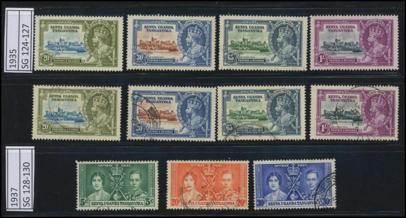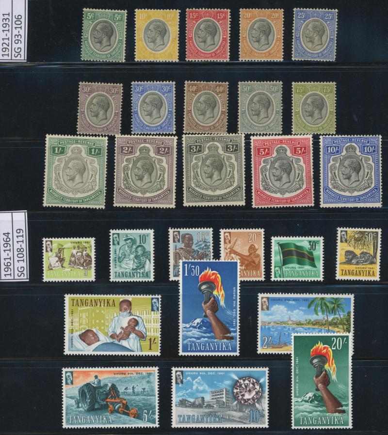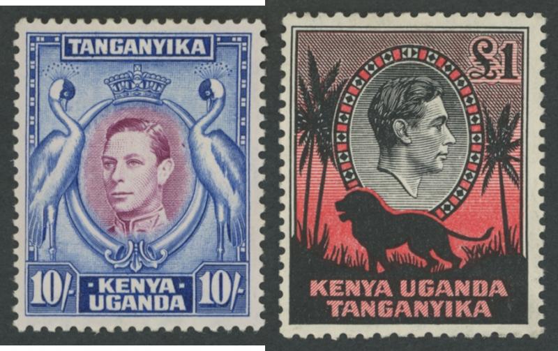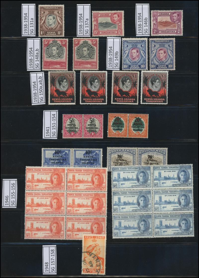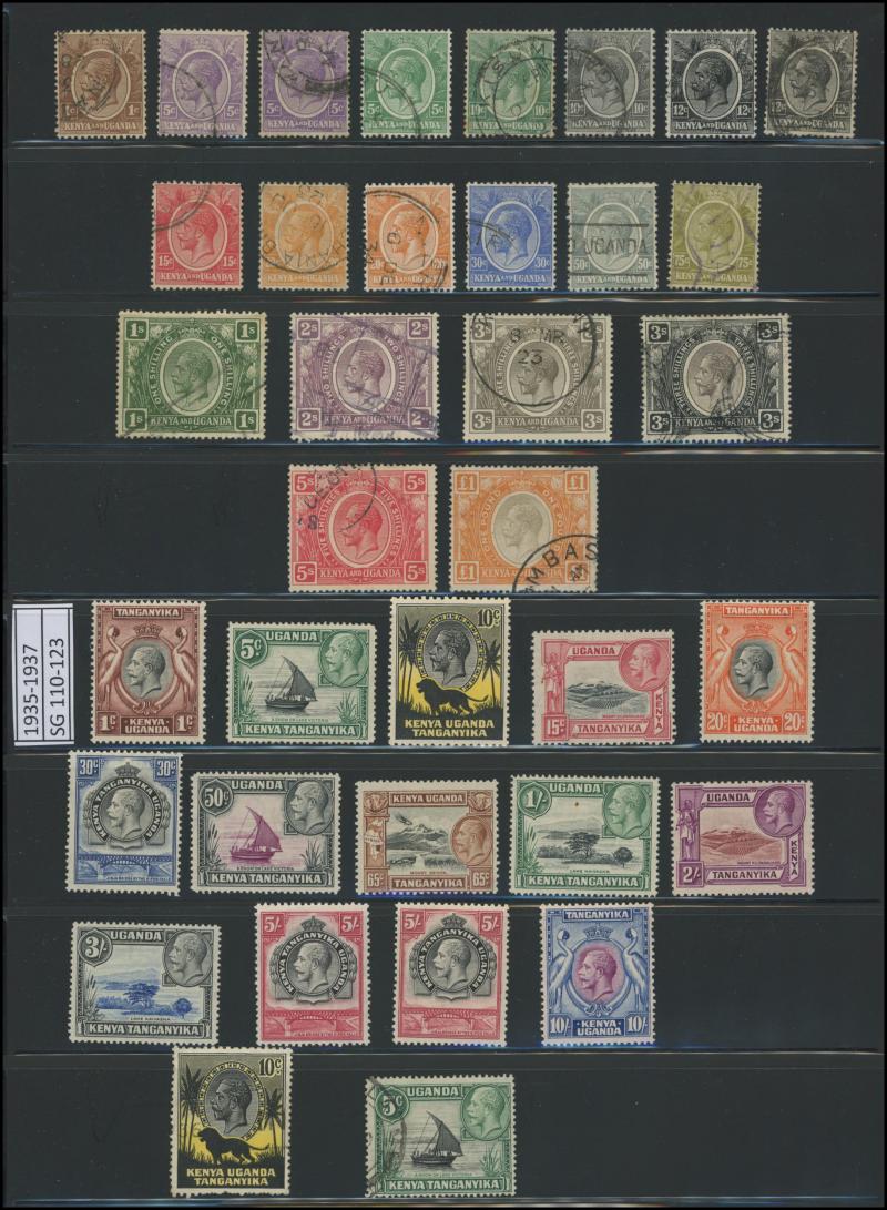'GEA' Overprints on KGV Keyplates set to 5r *, 1922-24 Giraffes set to 10/- * plus extra 10/- and New Colours quartet *, and 1927-31 KGV Keyplates set to 10/- *, also 1961-64 Pictorials set **, then KUT 1935-37 KGV Pictorials set * (the £1 with a