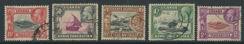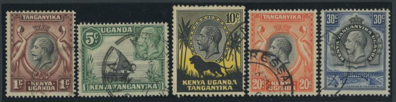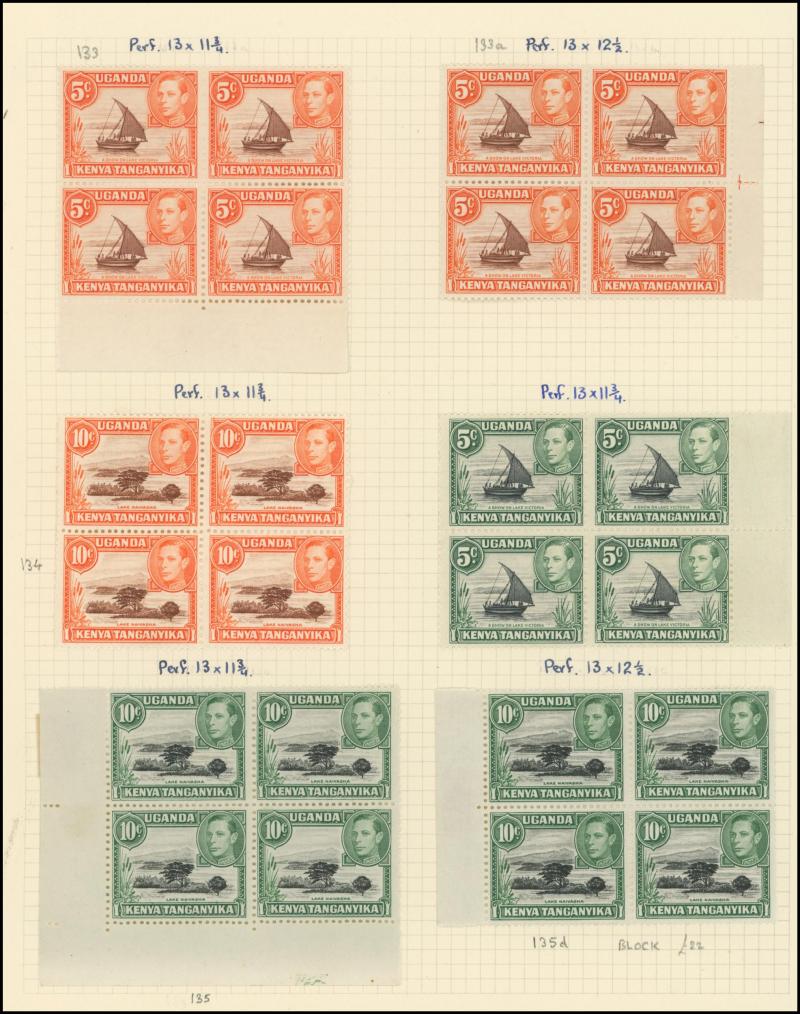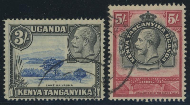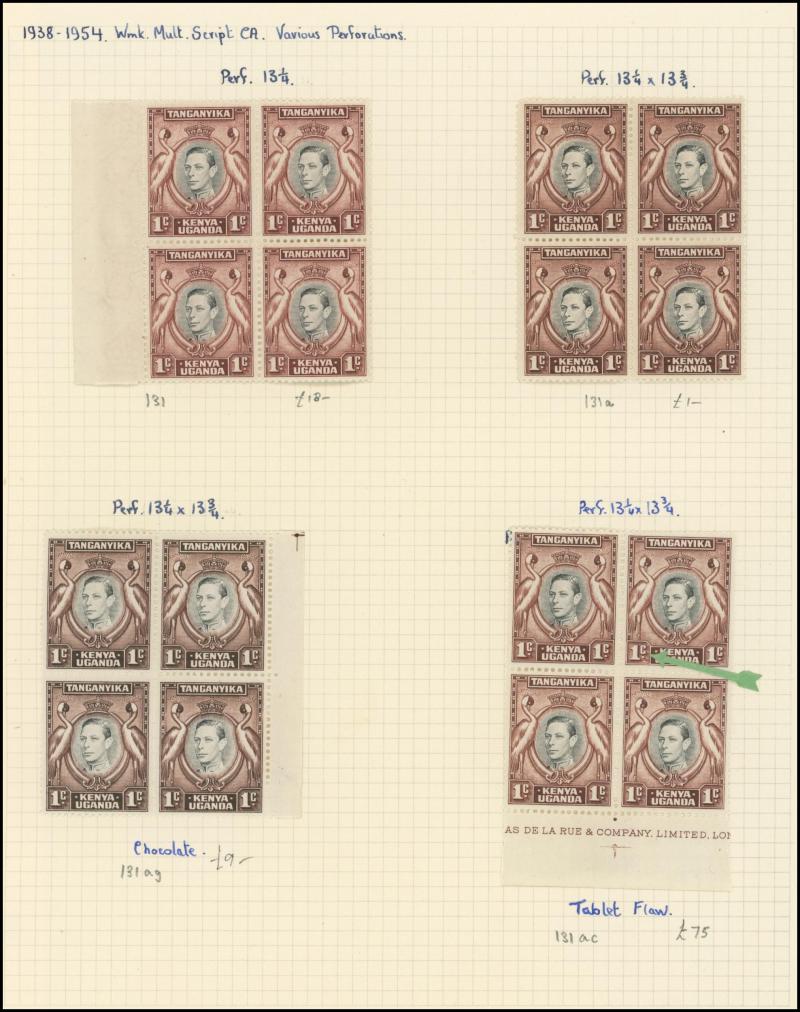 Multiple Crown CA Wmk set *, Kenya & Uganda 1922 KGV set to £1 plus extra shades including 5/- & 7/50c * and used to 2/- plus 12c jet-black, 3/- grey, 3/- jet-black, 5/- & £1 (the latter two with dubious cancels; not counted), Tanganyika 1917-21