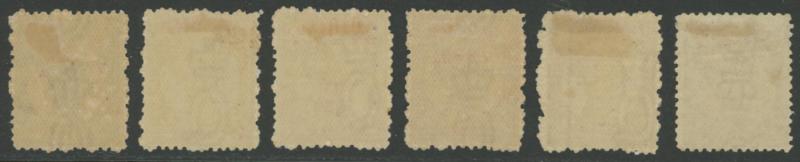 watermarked paper in slate-grey, yellow-ochre, dull red-brown, maroon, dull violet and violet-blue ACSC Q23(PP)4B D H P Q & R, the last with the Watermark Inverted, characteristic rough perfs, a couple of minor blemishes but generally very fine with