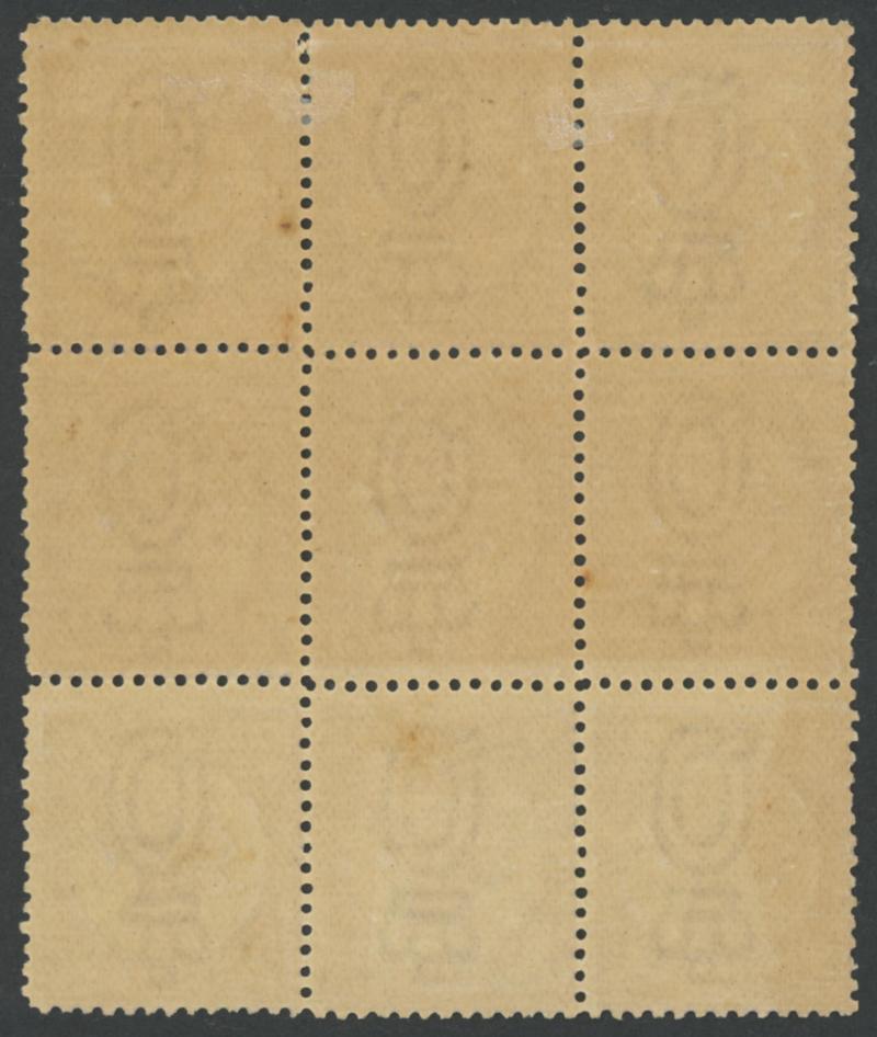 blue-grey on gummed watermarked paper, a few minor tonespots, virtually full gum with most units being unmounted. Proof blocks this large are rare. Bernie Manning's similar block of 9 in dull grey-green sold for $1515 (Sale 146 Lot 1118). (Image1) (Image2)