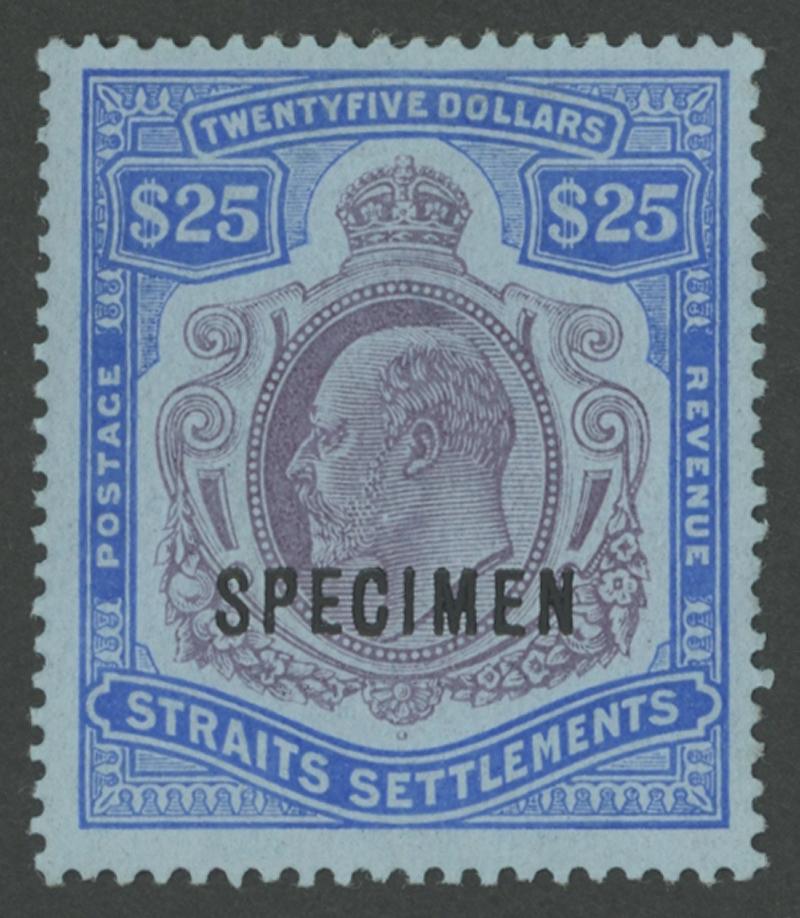 1906-12 KEVII Scroll Design Keyplates Multiple Crown CA Watermark $25 purple & blue/blue 'SPECIMEN' overprint SG 168s,