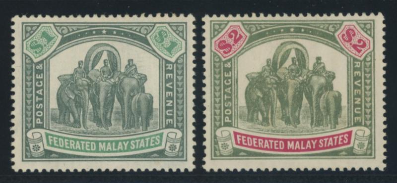 1900-01 Elephants Crown CC Watermark $1 green & dull green, $2 green & carmine and $5 green & pale ultramarine SG 23-25a, the $2