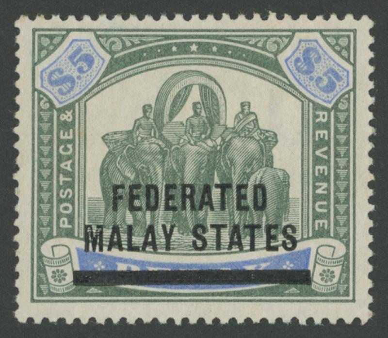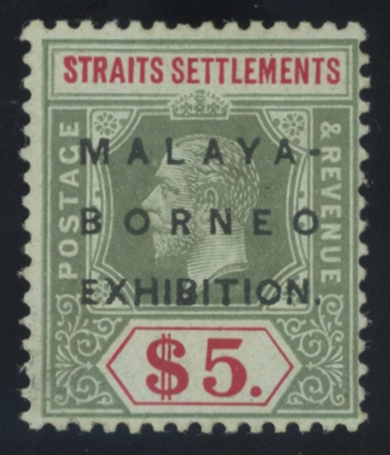 1922 Borneo Malaya Exhibition Overprints KGV Keyplates $5 green & red/blue-green Olive Back SG 249, very lightly mounted, Cat