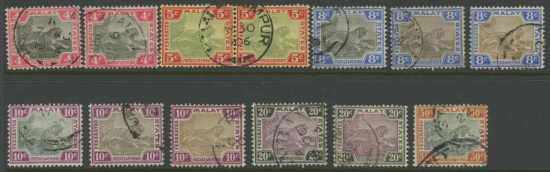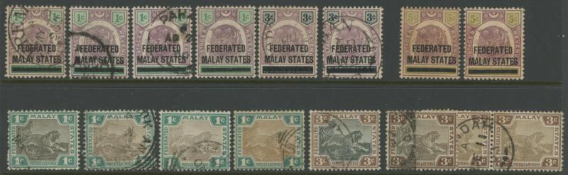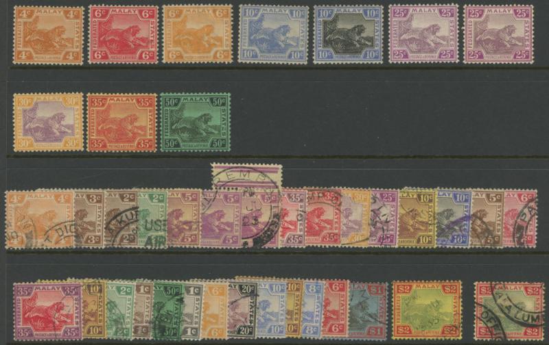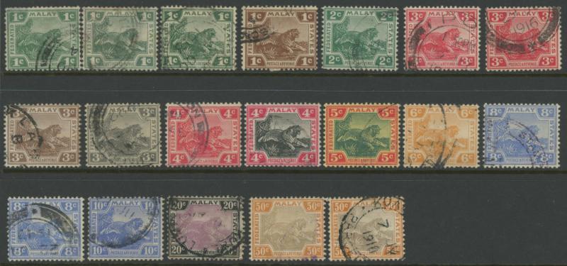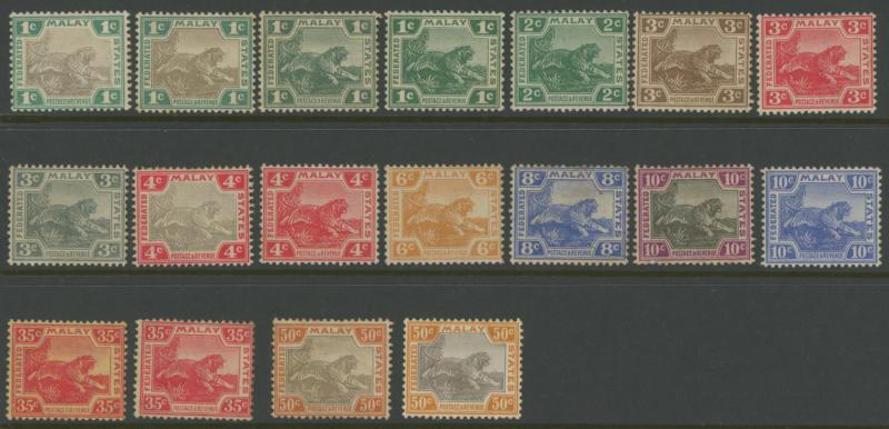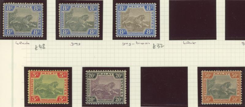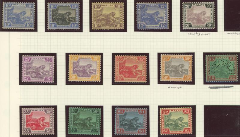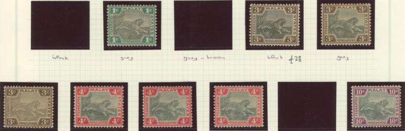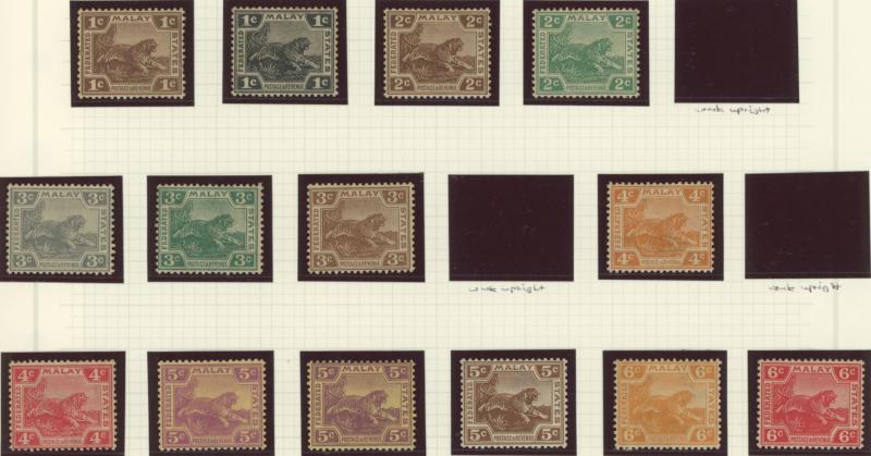 overprint, then 1900-01 Tiger Crown CA Wmk set used with extra shades including 8c black & ultramarine and 10c black & purple, 1904-22 Multiple Script CA Wmk Tiger range * with shades including 1c grey & green, 1c grey-brown & green, 10c black &