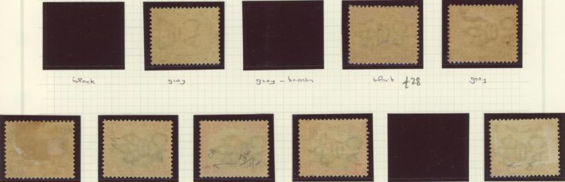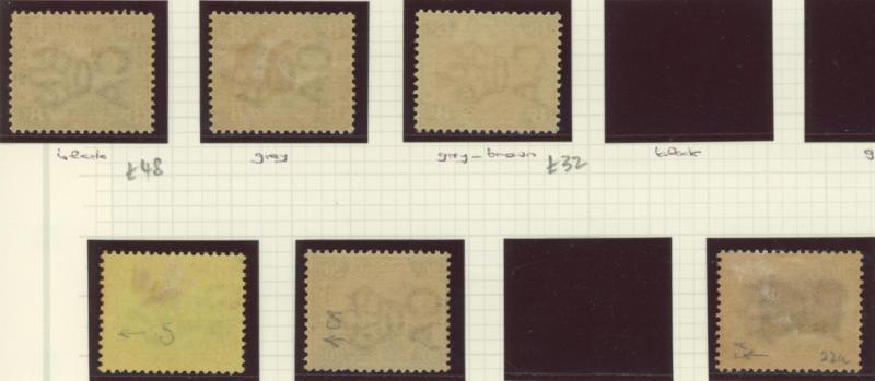 1900-01 Tigers Crown CA Watermark 1c to 50c set SG 15-22 plus extra shades including 10c grey & purple, 10c grey-brown & purple and