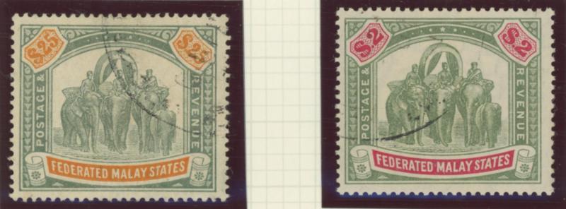 claret, 50c grey & orange, 50c grey-brown & orange-brown and 50c black & orange-brown plus Elephants $1 * and $2 & $25 with fiscal cancels, 1922-34 Multiple Script CA Wmk Tiger & Elephants set complete to both $5 * plus extra shades, Tiger $5
