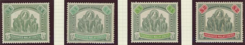 1904-22 Tigers & Elephants Multiple Crown CA Watermark $1 grey-green & green, $2 green & carmine and $5 green & blue SG 48-50, all
