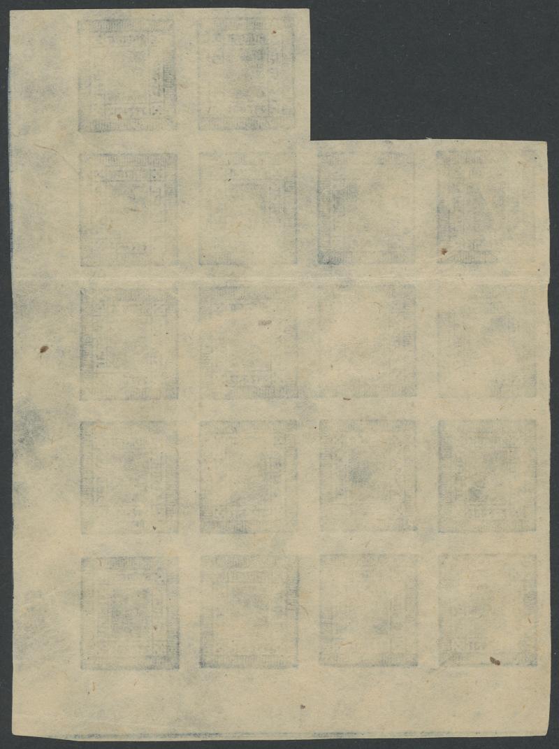 27 SG 27 (F&V 18) complete sheet of 64 (8x8) with nine horizontal or vertical Tete-Beche Pairs SG 27a, 1a dull blue Stg 27 SG 26 (F&V 18) Second State variant with the Clichés 'Cleaned' large-part sheet of 48 (8x6) with seven horizontal or vertical