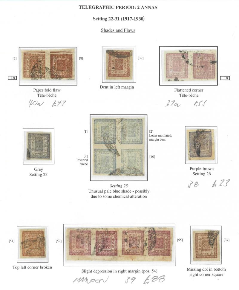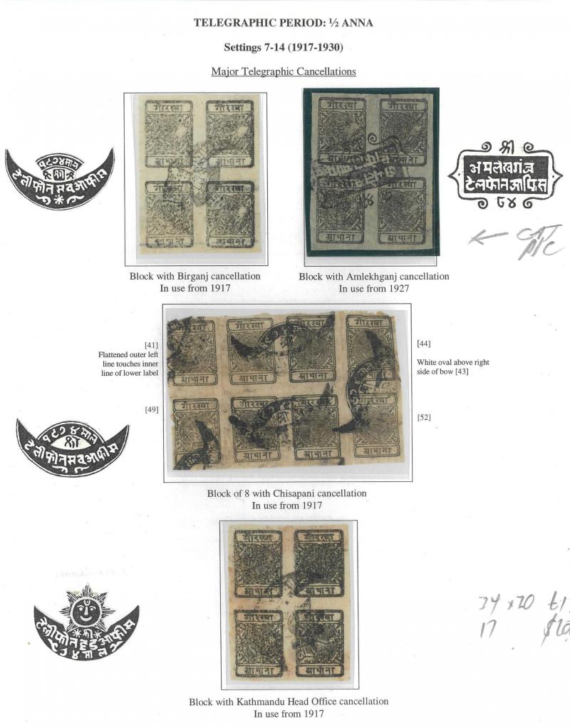 'NFPAL'), 'NEPAL/1ST DELY' 25mm or 24½mm (registered), 'NEPAL/2ND DELY' with 2-line date or 1-line date, & 'NEPAL/3RD DELY' with 1-line date (rare); and 1925-28 usages of 31½mm cds on 'On Postal Service' pre-UPU 'Acknowledgment' of receipt of