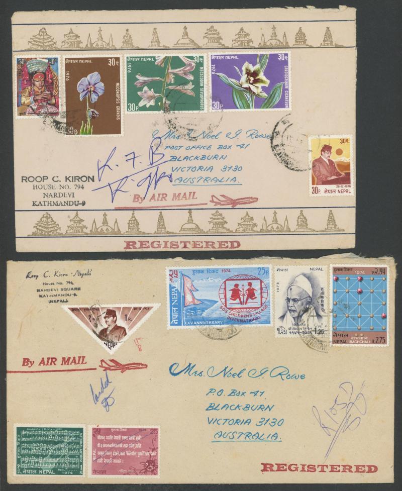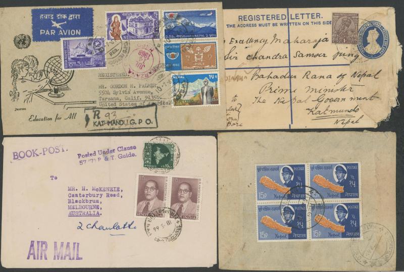 modern and from post offices across the country, many made from native papers, noted registered, official & airmail items, also a few 1960s-70s Everest Expedition souvenir postcards signed by mountaineers, generally fine to very fine.