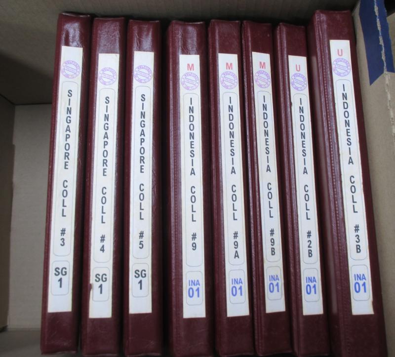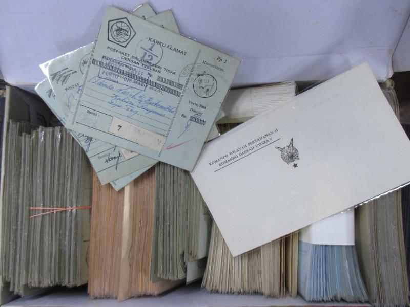 Eight cartons of Netherlands Indies & Indonesia in sparsely populated albums, including a group of 1960s cheques, 1960s radio