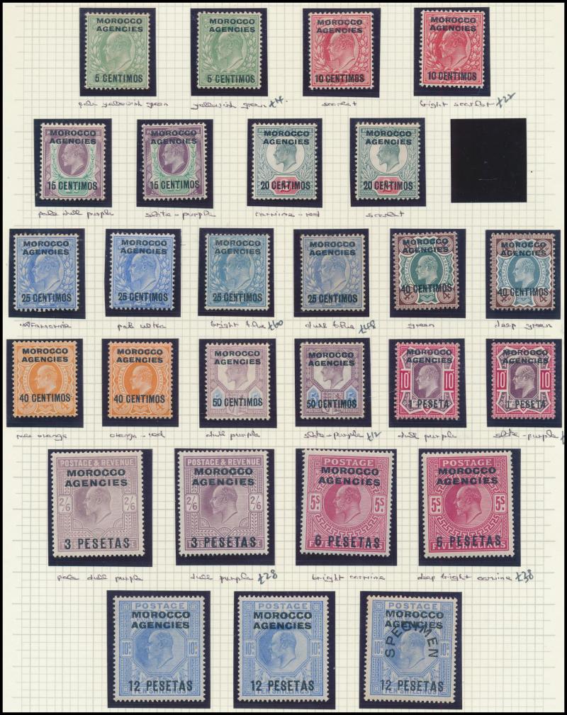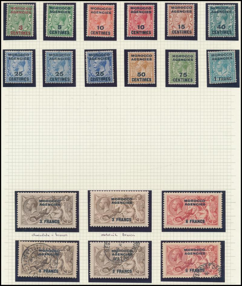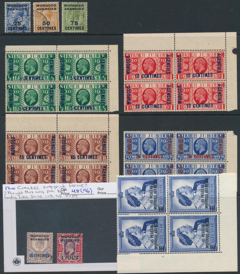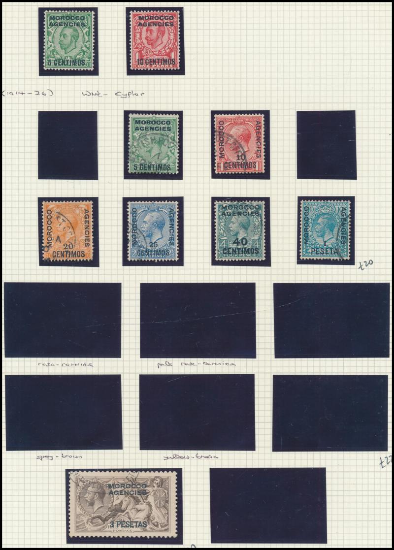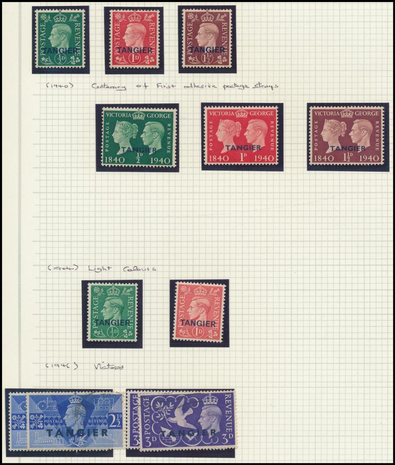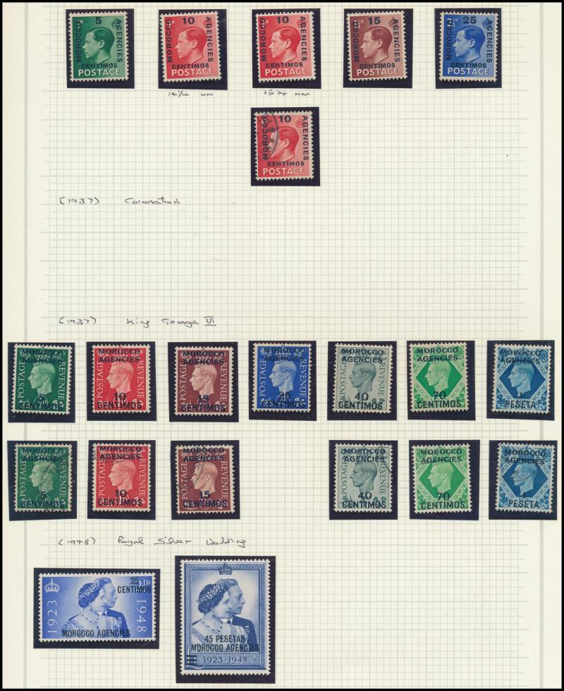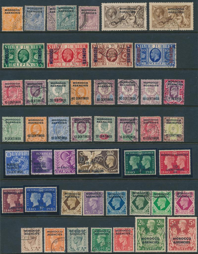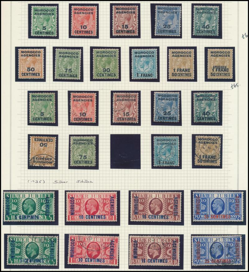apparently complete * plus many used and 'SPECIMEN' overprints KGV 1/- (both) & Seahorses duo, also Tangier reasonably complete to 1950 * plus many used including 1949 KGVI set (ex 11d) with Tangier cancels and 1950 2/6d, 5/- & 10/-, 1953 QEII