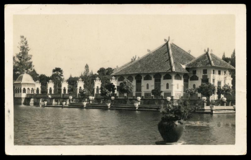 1930 (circa) real photo postcard to Australia posted on board ship with Pictorials 2½c x2 & 5c tied by oval 'KONINKLIJKE