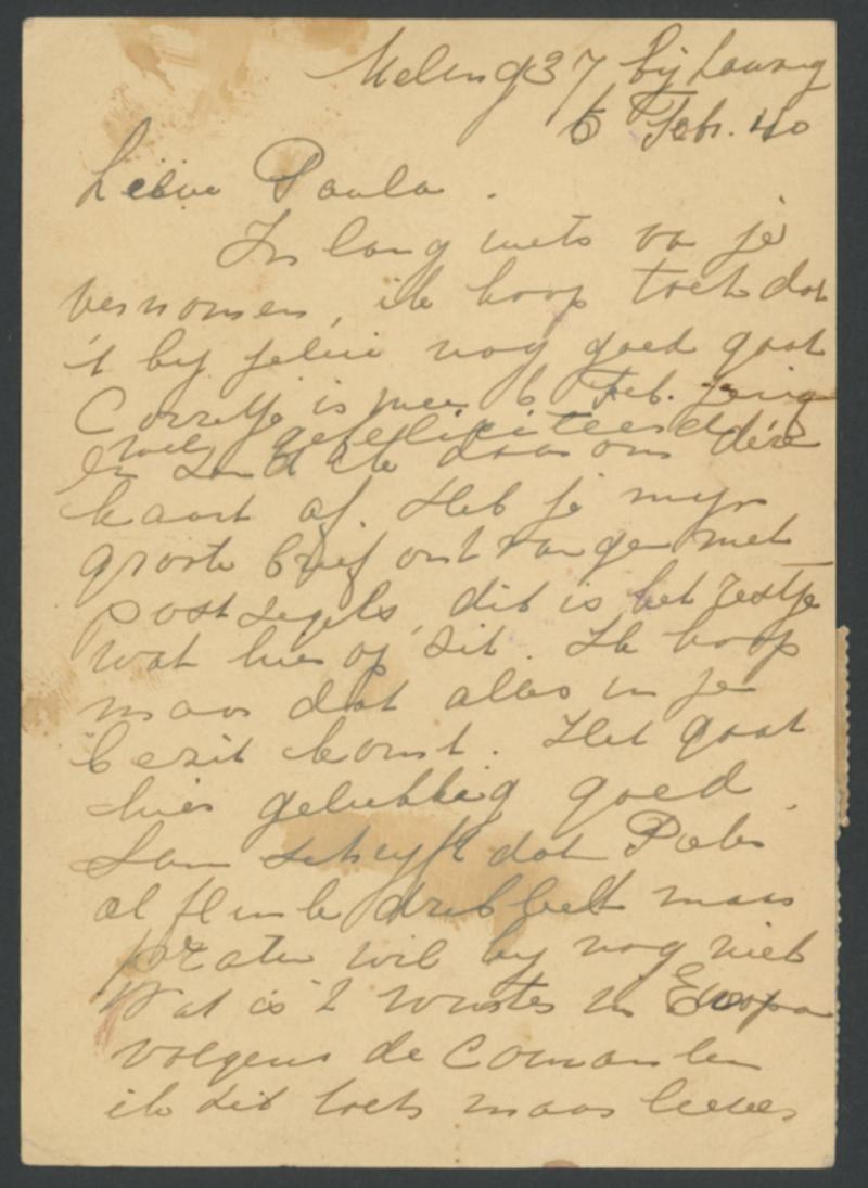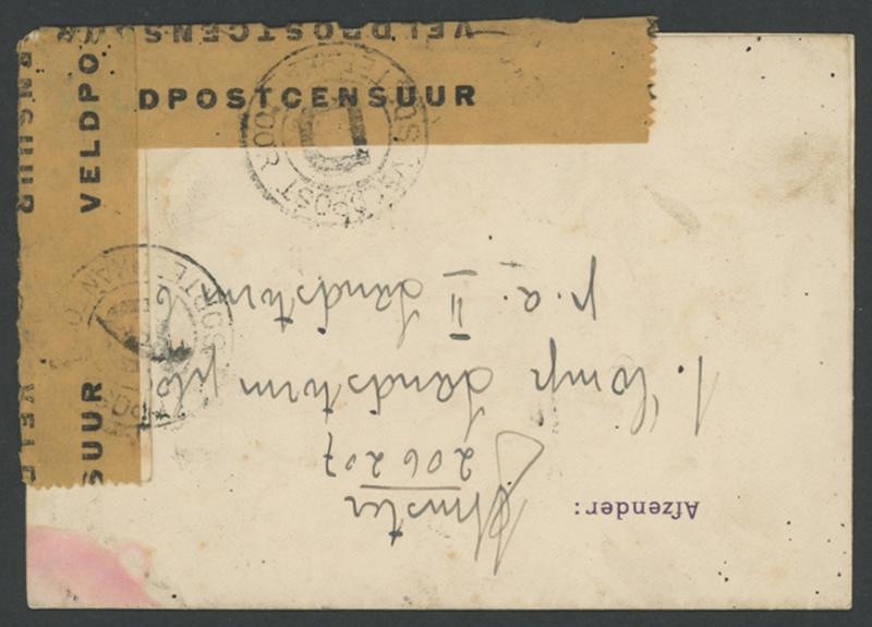 'VELDPOSTCENSUUR' black/brown resealing label tied by multiple strikes of 'VELDPOST/D/SORTEERKANTOOR' undated circular handstamp, minor blemishes.