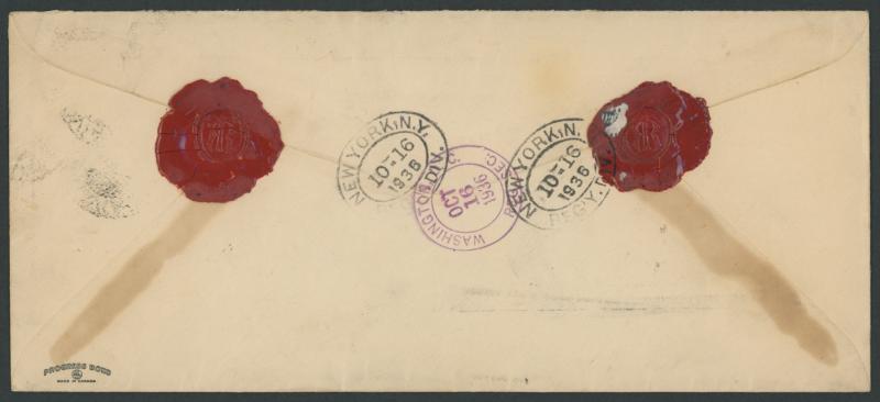 Washington 'OCT/16/1936' transit backstamps, a couple of minor blemishes. Carried by ship to New York and onwards by domestic US airmail.
