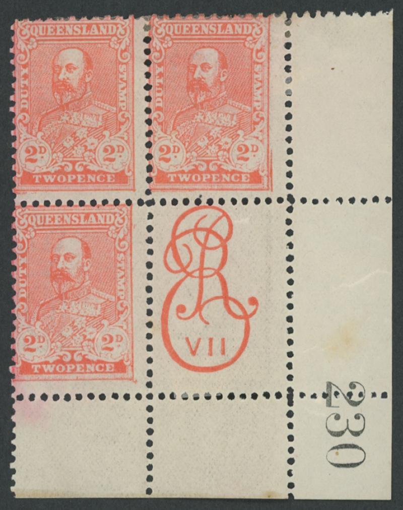 are unmounted, Cat $300+ (£220+) for mounted singles. A scarce multiple. Ex John Williams (UK) 'Reign of KEVII': sold at our auction of 6.3.2010 for $610 (Sale 154 Lot 53). (Image1) (Image2)