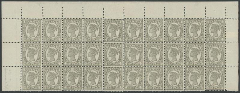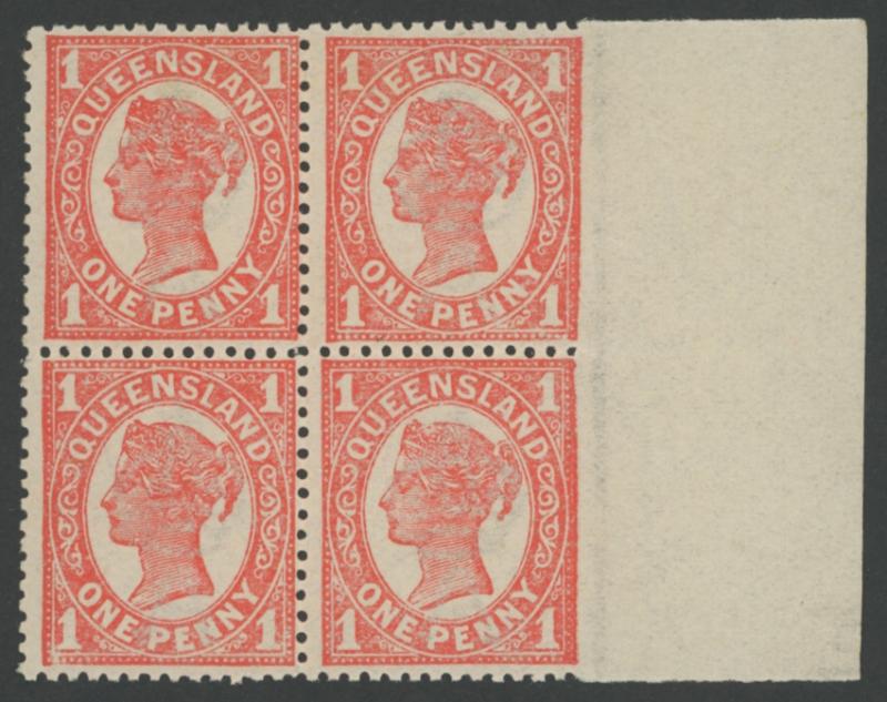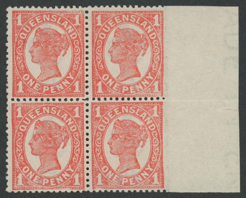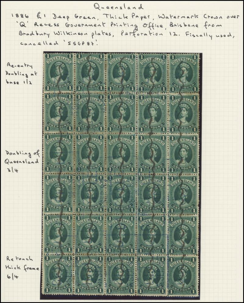 margins, Pos [1/2] with Re-Entry (Doubling at the Base) SG 161a, Pos [6/4] with unlisted Retouch (Thick Frame at Lower-Right) and Pos [3/4] with unlisted Doubling of 'QUEENSLAND' (noted by Arthur Basset Hull and Alan Griffiths), fiscally used with
