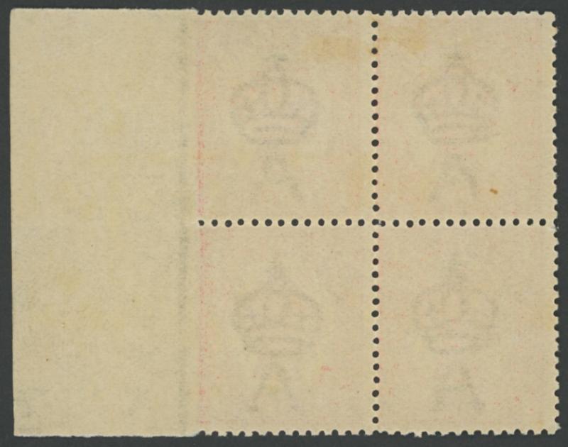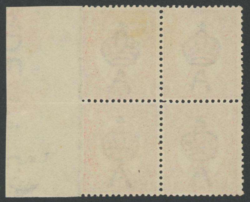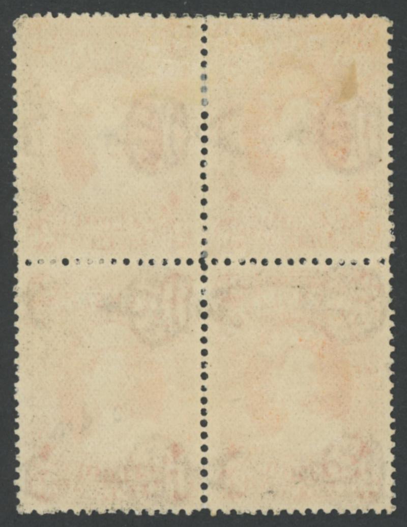 STAMP DUTY: 1901 KEVII 2d rosine lower-left block of 4, the last unit being an 'ER/VII' Monogram, large-part gum with minor hinge