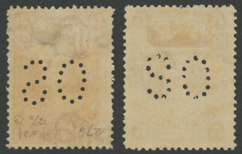 ACSC Q55Db and Q58Ab(var), minor hinge remainders, Cat $450 plus a premium for the reversed perfin. (2) (Image1) (Image2)