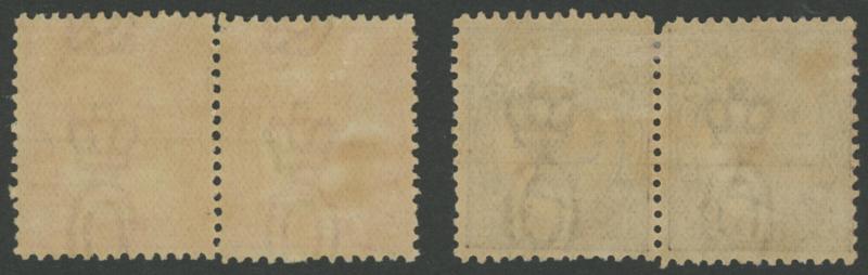 1903 QV Sidefaces Numerals at Four Corners New Denomination 9d perforated colour trial pairs in coral-pink and brown-purple gummed