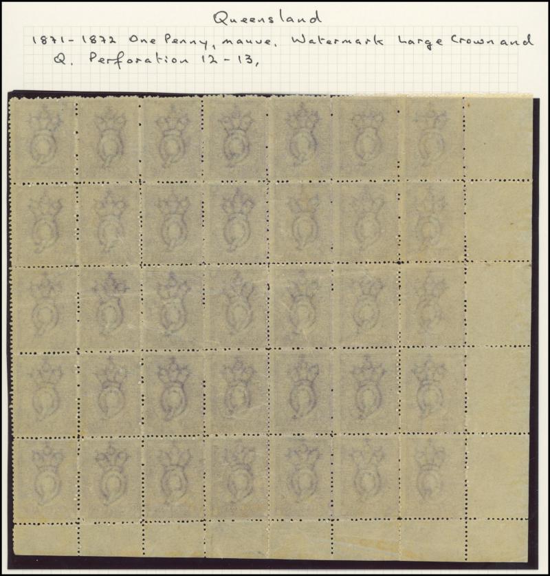 remains at top. Ex Francis Kiddle: sold at our auction of 23.9.2011 for $610 (Sale 168 Lot 258). Dave Elsmore has advised of the extraordinary 11x11 plate layout. This resulted in 121 positions, the last of which was occupied by the monogram,