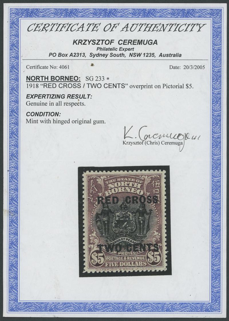 10c Boar & 25c Badge, most with above-average centring, a few with minor gum tropicalisation, lightly mounted or with very small hinge remainders, Cat £900. Chris Ceremuga Certificates (2004) for the $5 & $10.