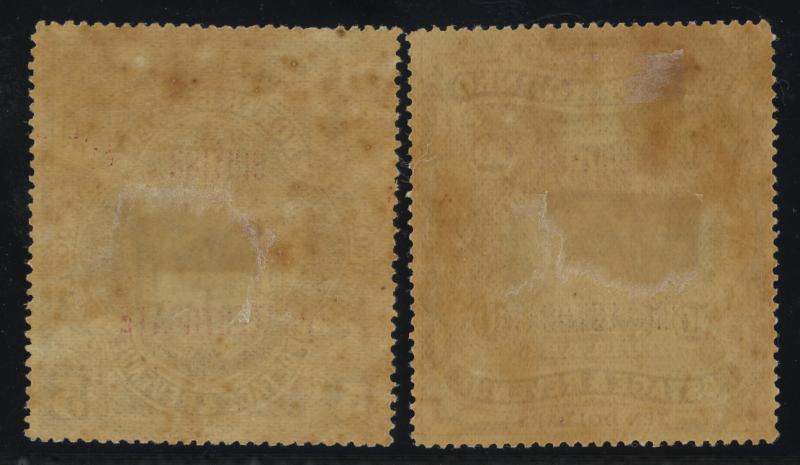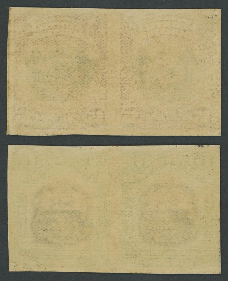 mounted, Cat £340. Gibbons states these have no gum. However, both pairs here have large-part gum. (2 pairs) (Image1) (Image2)