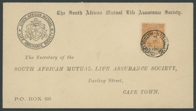 upper-right caused by acidic writing ink. From the Second Matabele War of -.3.1896 to -.10.1897. See also Lot 3066 under Bechuanaland above.