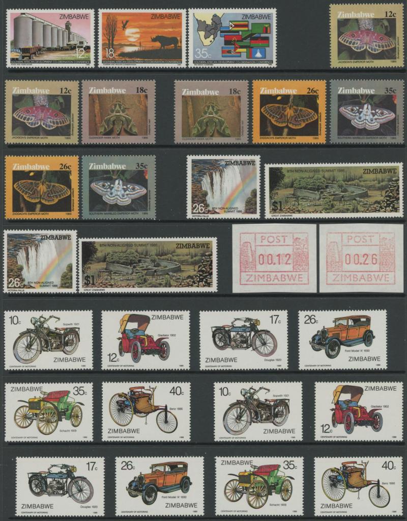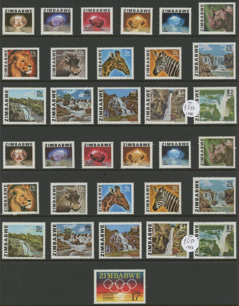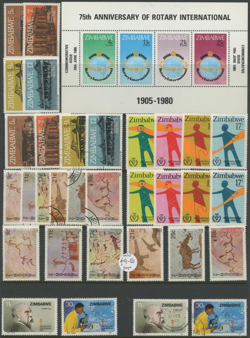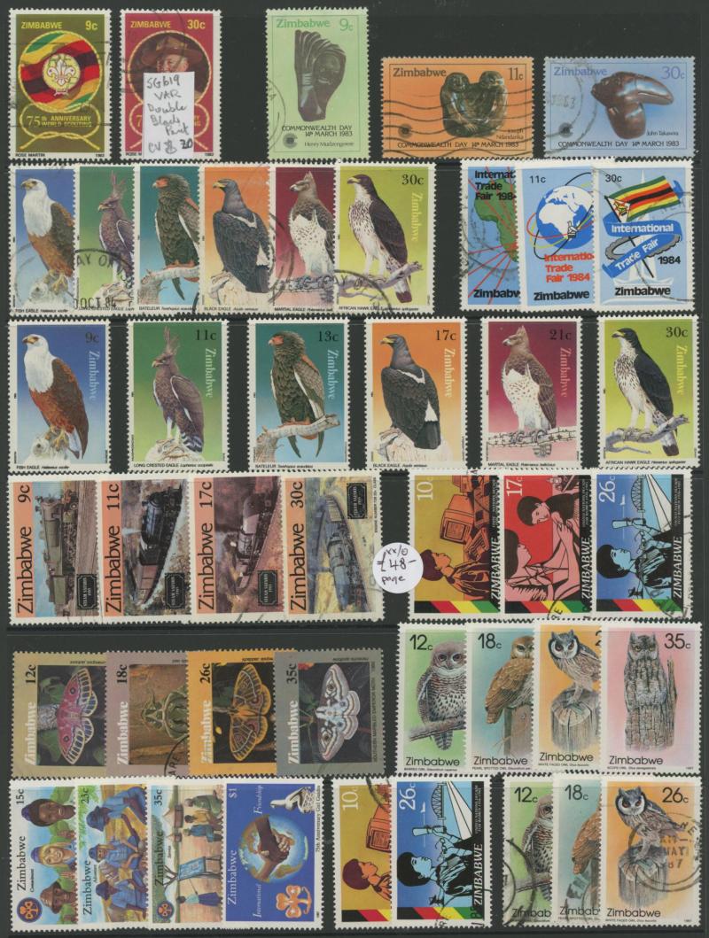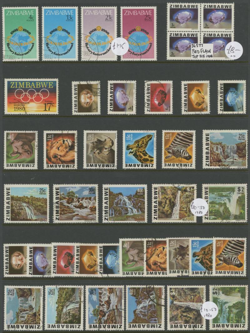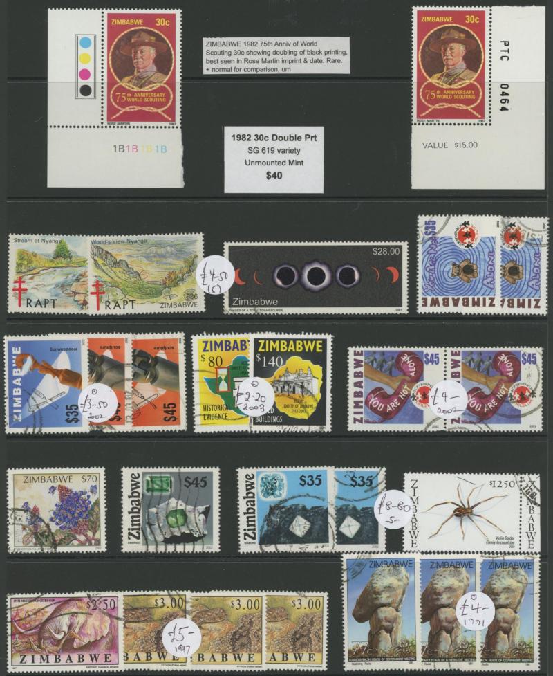 Harrison Printings 3d with Chocolate (Branches) Partly Omitted single and Antler Flaw in a block of 9, Mardon (Salisbury) Lithographed Printings with paper & gum varieties, etc, plenty of thematic interest, also Zimbabwe 1984 Birds of Prey in Plate