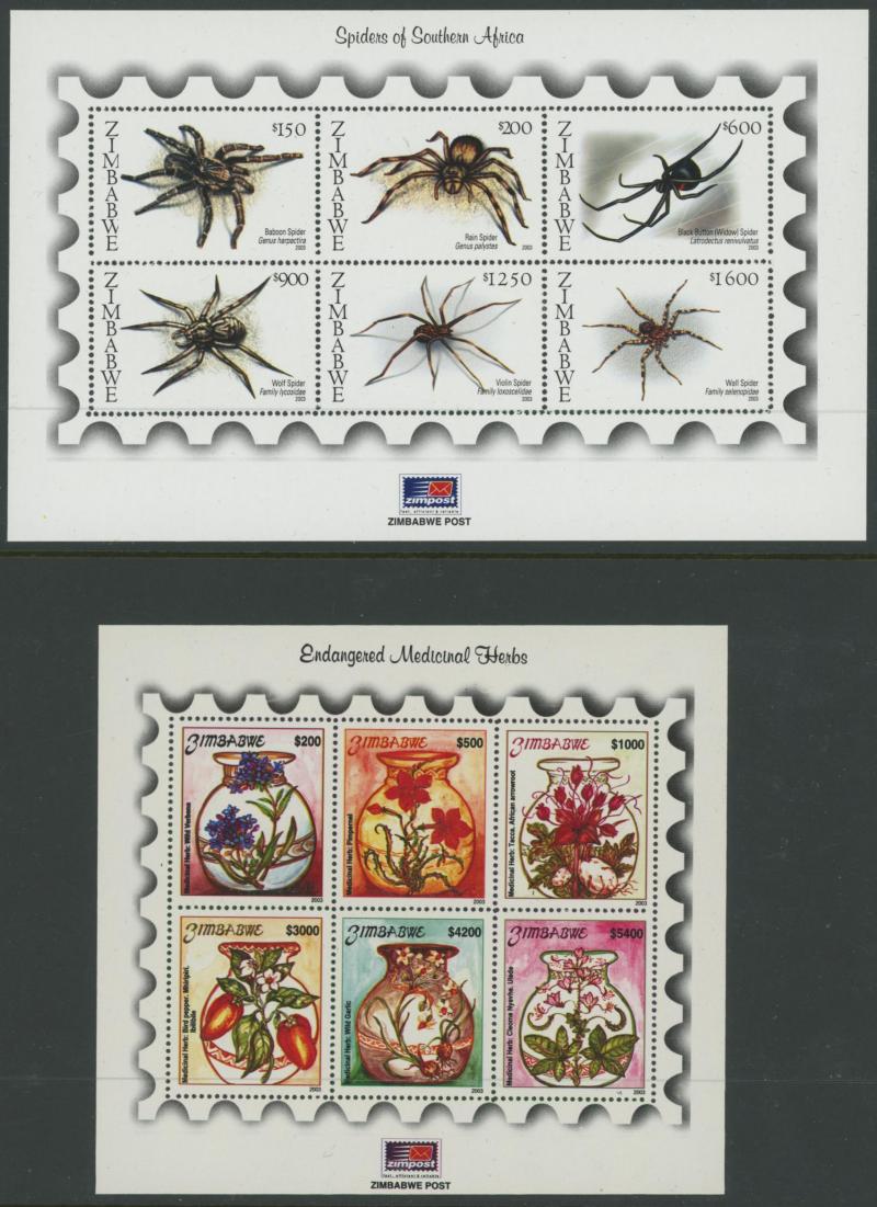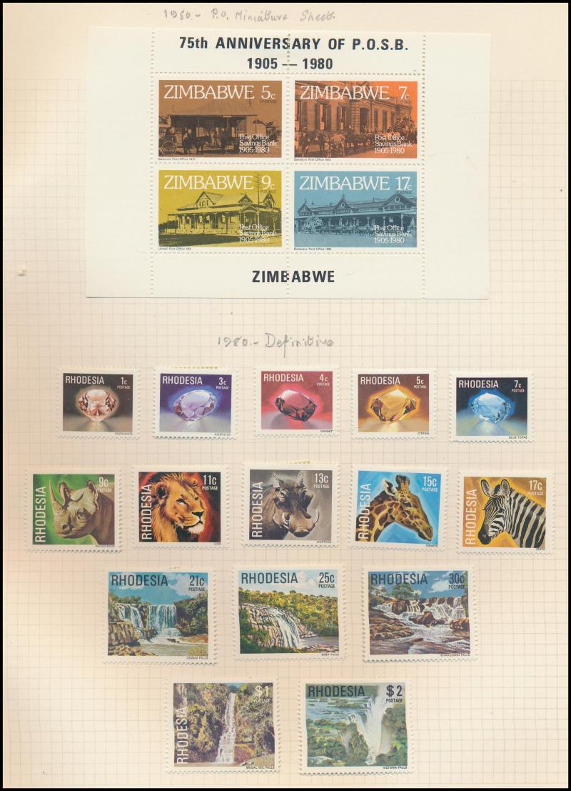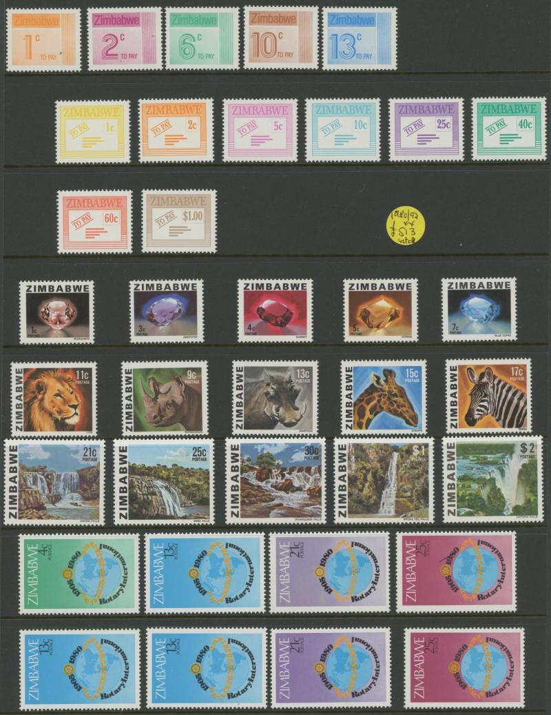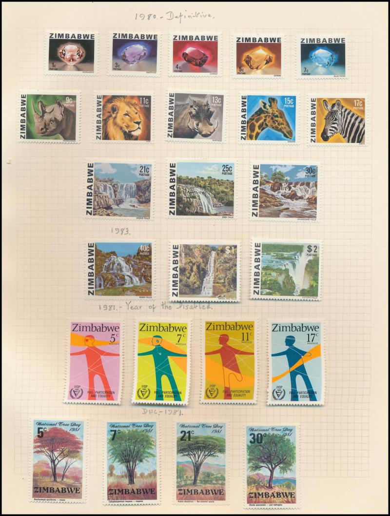 ZIMBABWE: 1980-2003 collection mint and used on hagners, includes M/Ss, Postage Dues, and 1982 30c Scouting Black Printing Doubled
