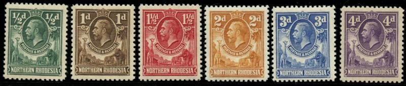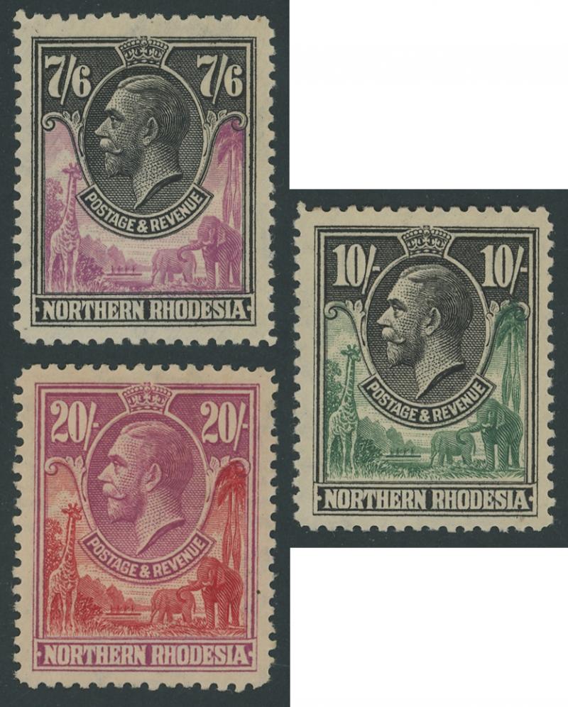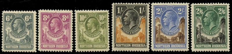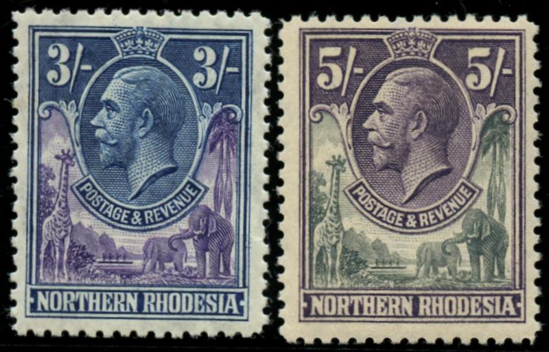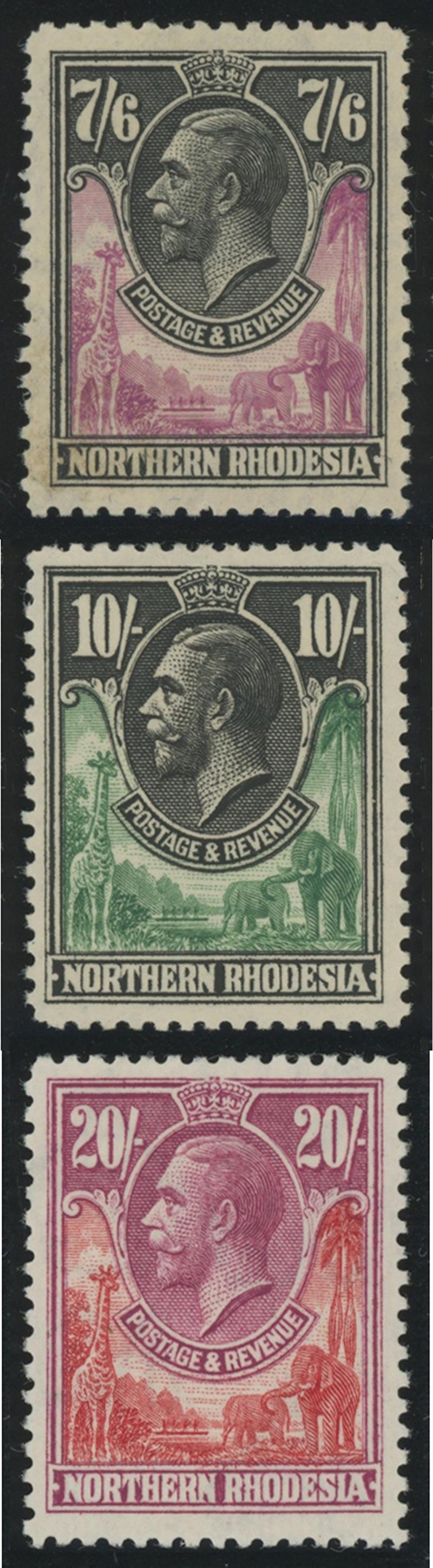 NORTHERN RHODESIA: 1925-29 KGV Giraffe & Elephant ½d to 20/- set SG 1-17, above-average centring, a few including the 7/6d with