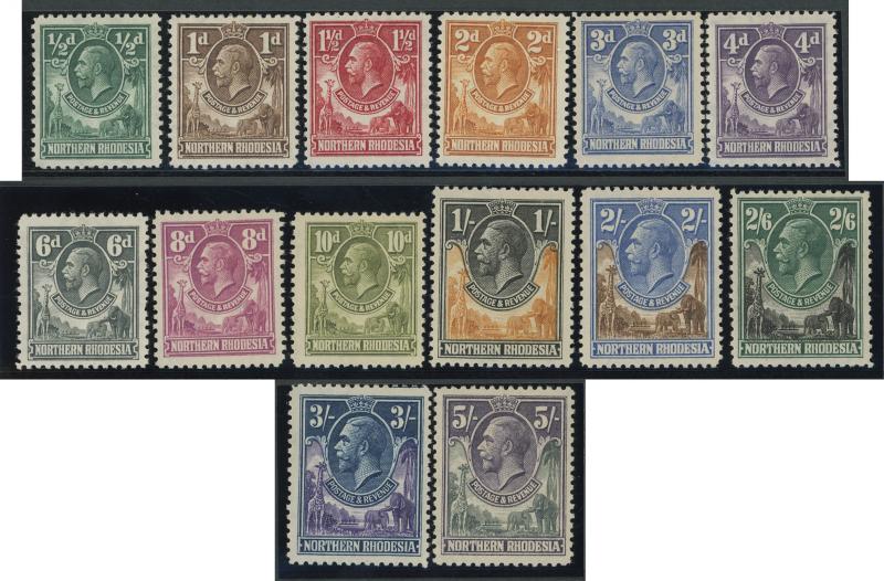 NORTHERN RHODESIA: 1925-29 KGV Giraffe & Elephant ½d to 20/- set SG 1-17, above-average centring, the 20/- with minor gum