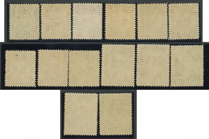 light gum tropicalisation, the 10/- (very lightly mounted) & 20/- (unmounted) both very fresh, most others appear to be unmounted, Cat £800+ for mounted.