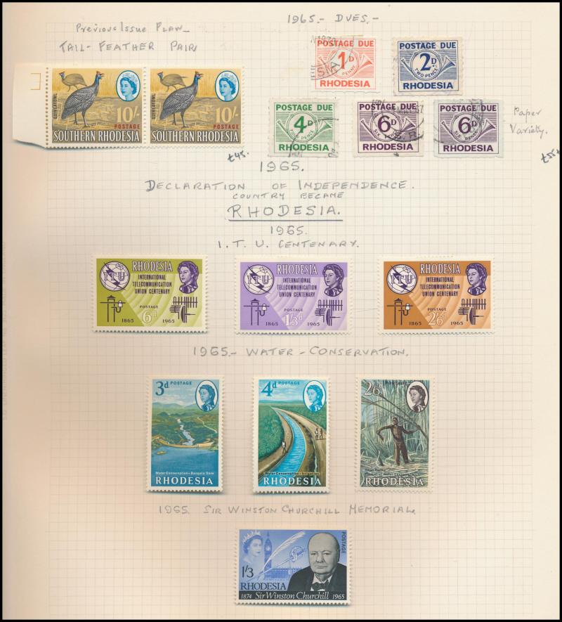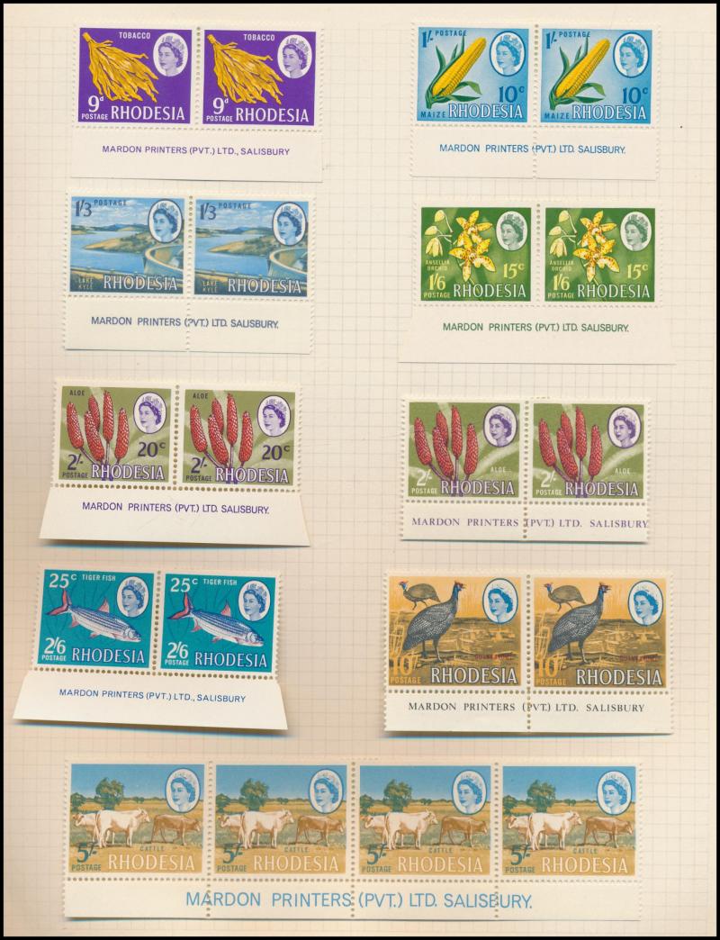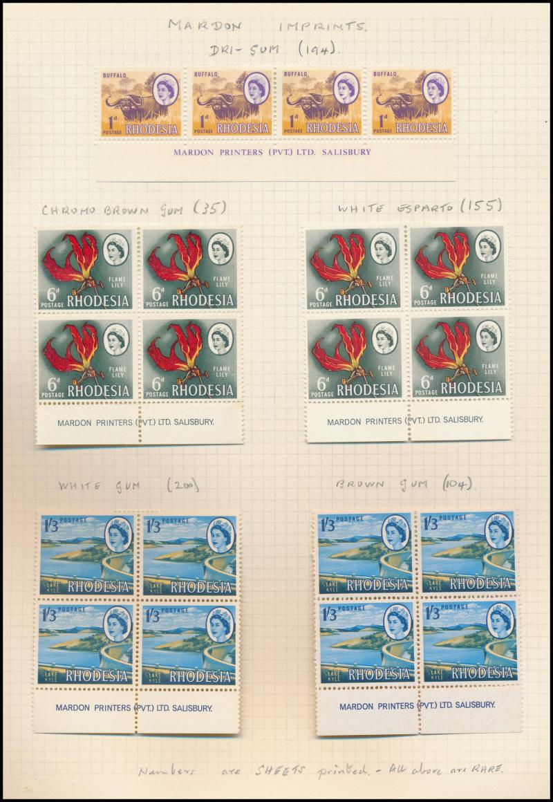 UNILATERAL DECLARATION OF INDEDENPENCE: Extensive collection from 1965 Rhodesia issues in Imprint & Plate Number blocks noted Water