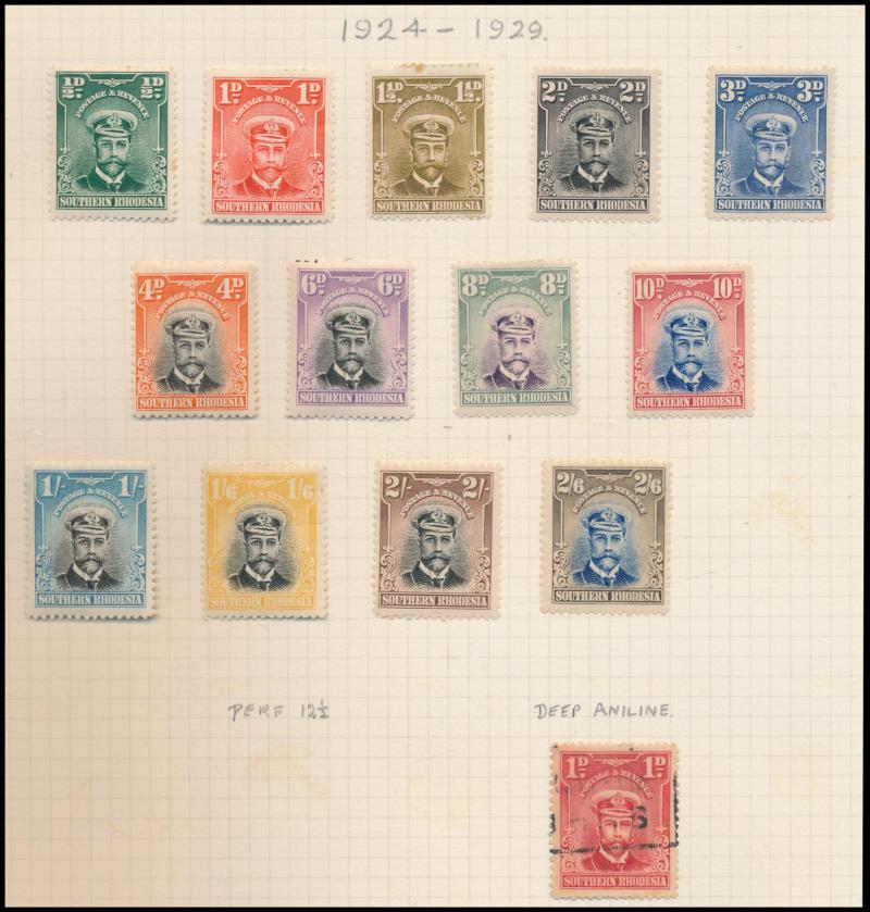 SOUTHERN RHODESIA: Collection from 1924-29 KGV Admirals ½d to 5/- set SG 1-14 plus a range of additional annotated shades including