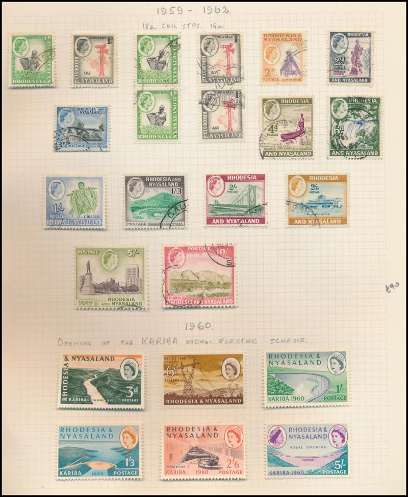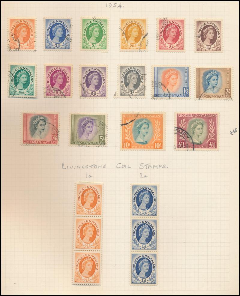 RHODESIA & NYASALAND: Collection mostly unmounted including 1954-56 QEII Pictorials set * & used plus ½d & 1d coil pairs, ½d, 1d &