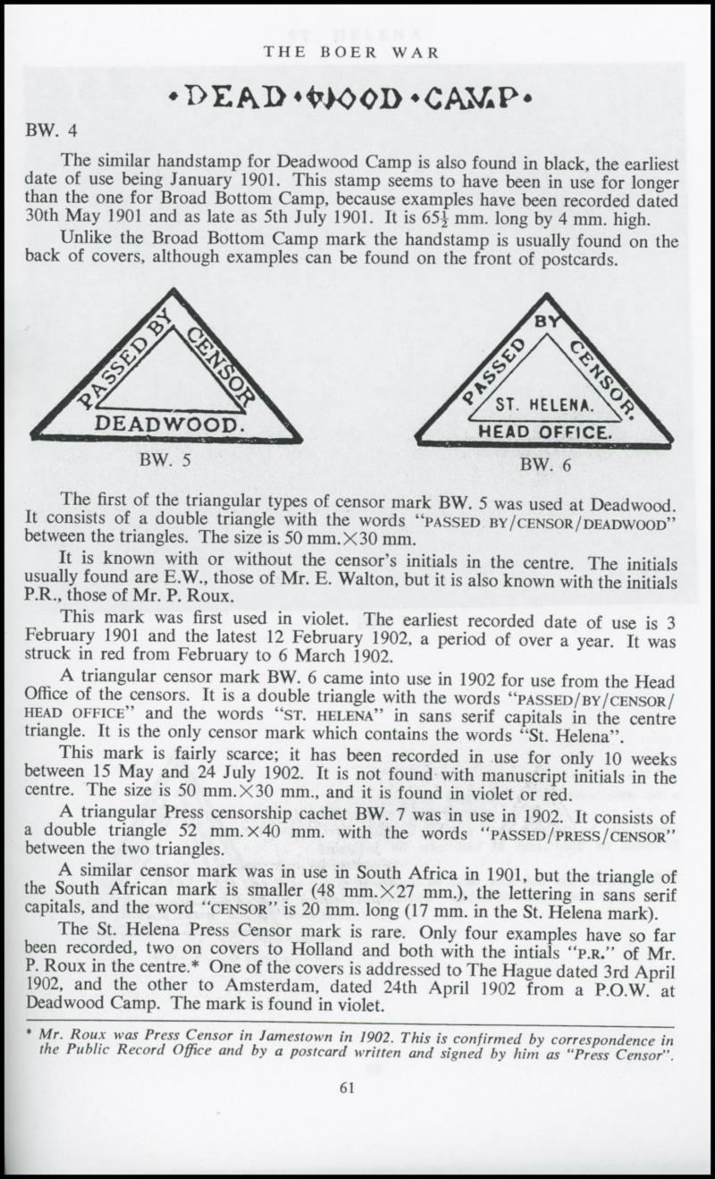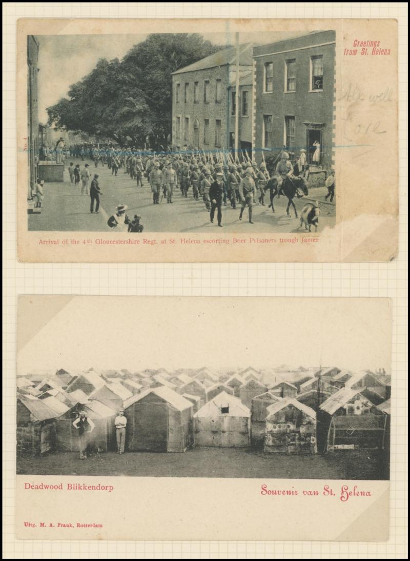 "Broad Bottom Camp" x2, "Deadwood Camp" x2 & "Deadwood Bottom Camp" (!), Transvaal-Mozambique-Cape-St Helena with no redirection to the island, PPCs of the island x5 (one from St Helena to Denmark & one from Holland to the Orange River Colony