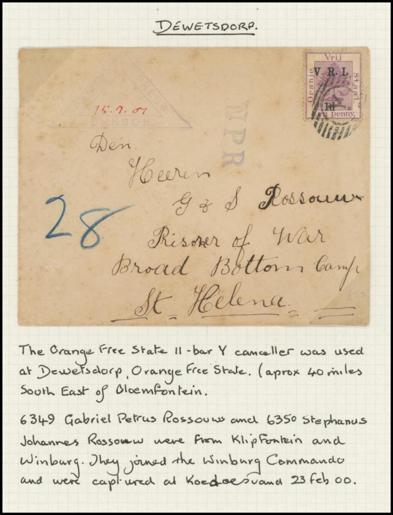 POSTAL HISTORY: Partly-annotated Boer War POWs group with cover-front to the Cape with 'PRISONERS OF WAR/("HM")/CENSOR/BROAD BOTTOM