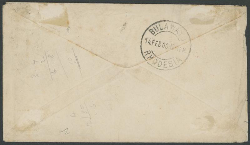 1900 (Feb 14; Valentine's Day) stampless On Active Service cover endorsed "... Capt/BSAP" (= British South Africa Police) to