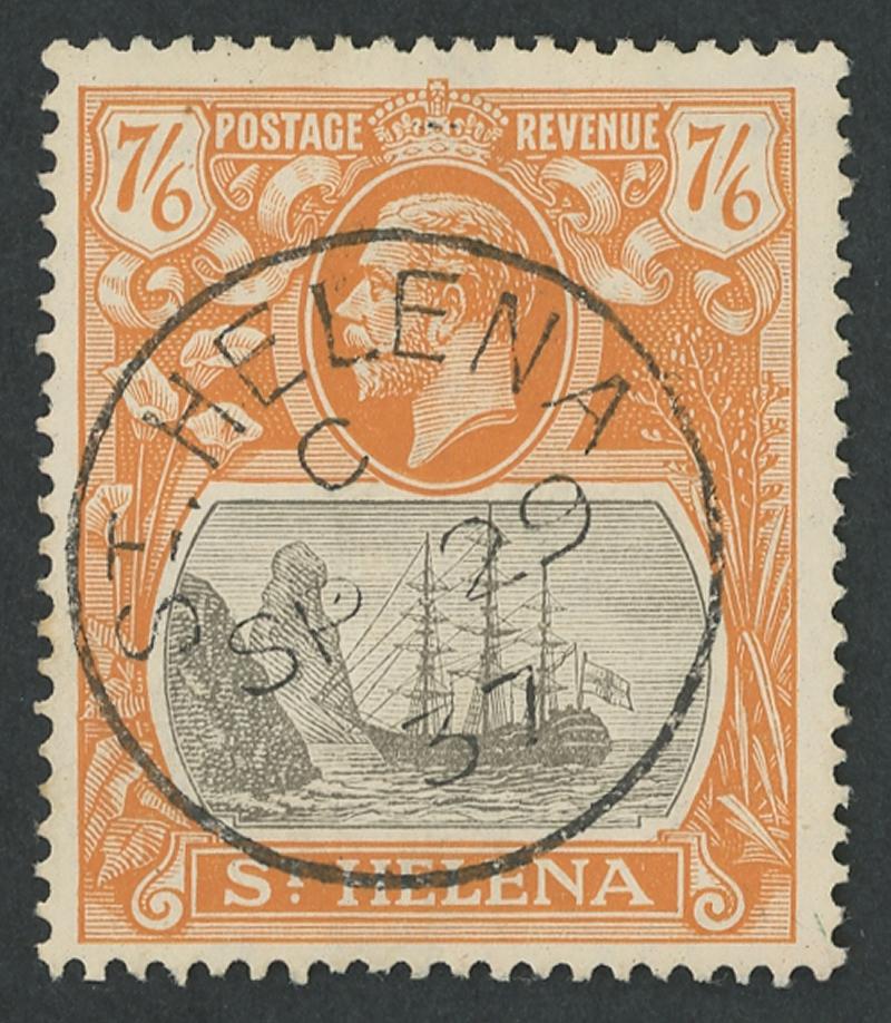 1922-37 KGV Badge Multiple Script CA Watermark 7/6d grey-brown & yellow-orange SG 111, very fine complete St Helena cds cancel, Cat