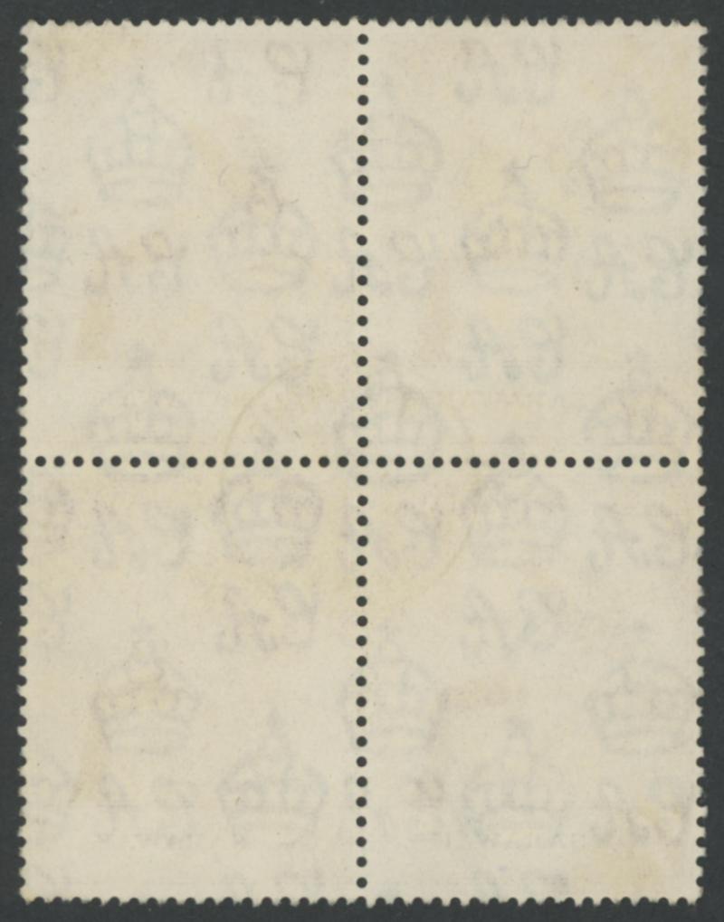 1912-16 KGV Pictorial Multiple Crown CA Watermark 3/- black & violet SG 81 block of 4 from the lower-right corner of the sheet with