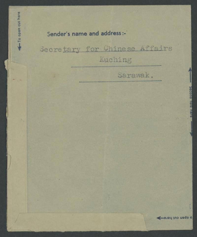 POSTAL HISTORY: 1940 (Nov 9) envelope unsealed to Canada endorsed "Card Only" with Vyner Brooke 4c purple solo tied by 'KUCHING'