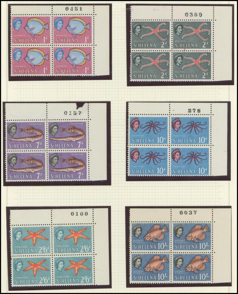 QEII Pictorials set used/CTO, blocks of 4 ** plus 10/- Plate Number '1' block of 4 **, 1961-65 QEII Animals set including Chalk-Surfaced Papers ** & used and basic set blocks of 4 **, etc, condition generally fine to very fine, Cat £10,000+.
