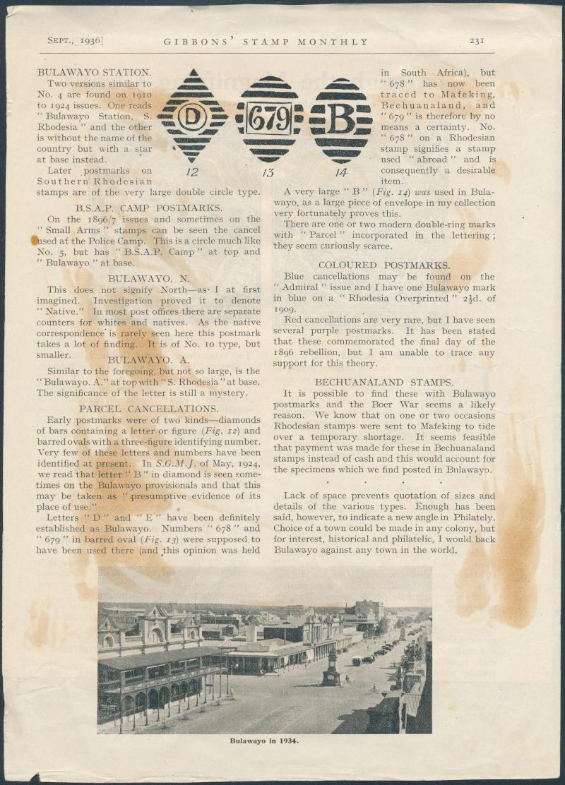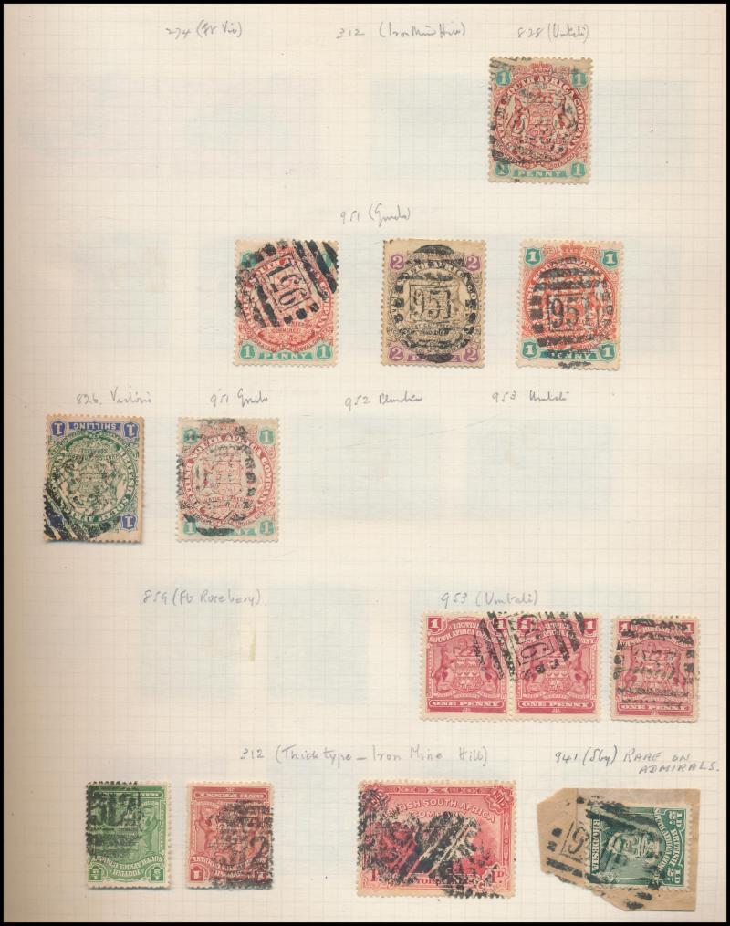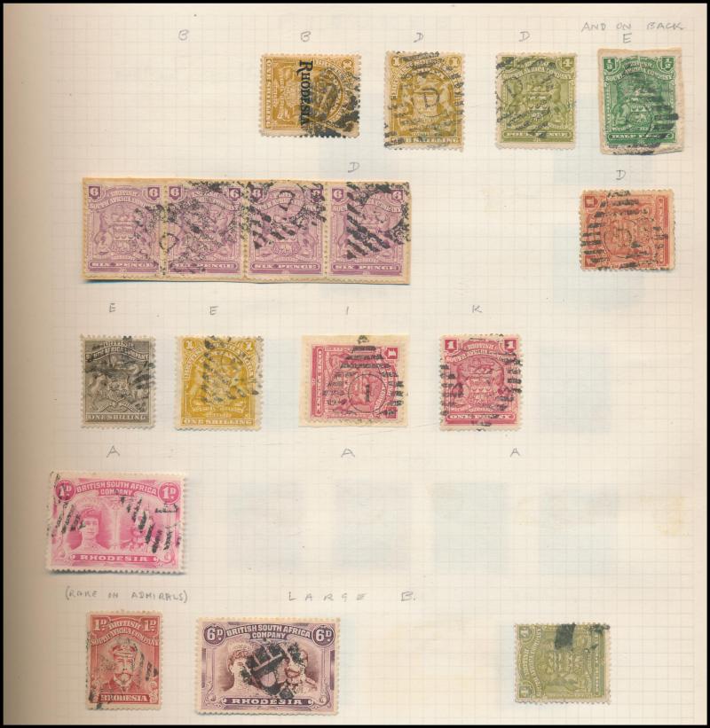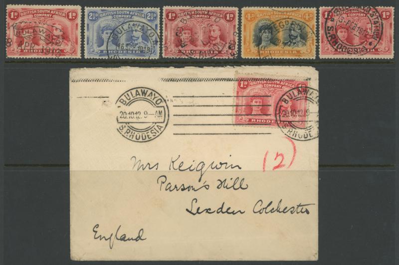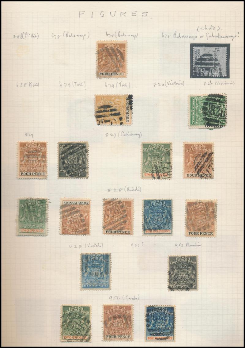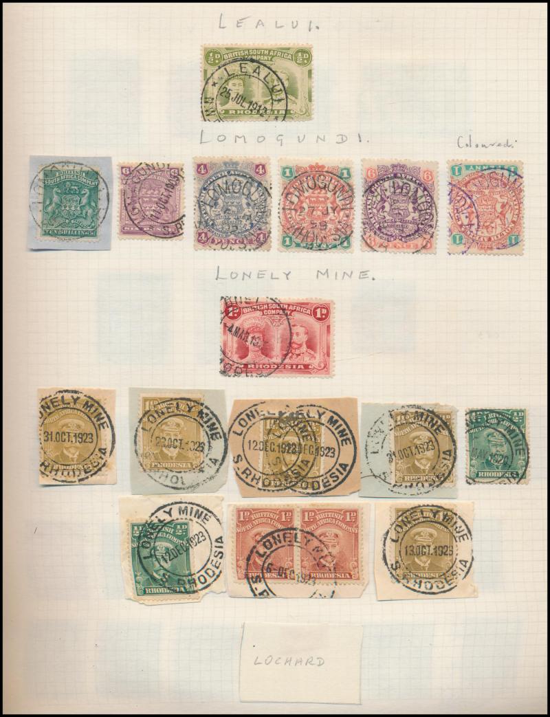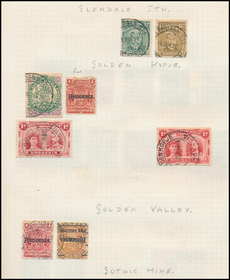 complete on 2½d blue and 'GWANDA' on 1/- green, on Double Heads 'A'-in-diamond of Salisbury on ½d and 'B'-in-bars on Bulawayo on 6d, 'FORT ROSEBERY' single-circle, 'LEALUI', 'MAKWIRO', 'UMBOE', on Admirals 'BEATRICE MINE', 'BROMLEY', 'DAISYFIELD',